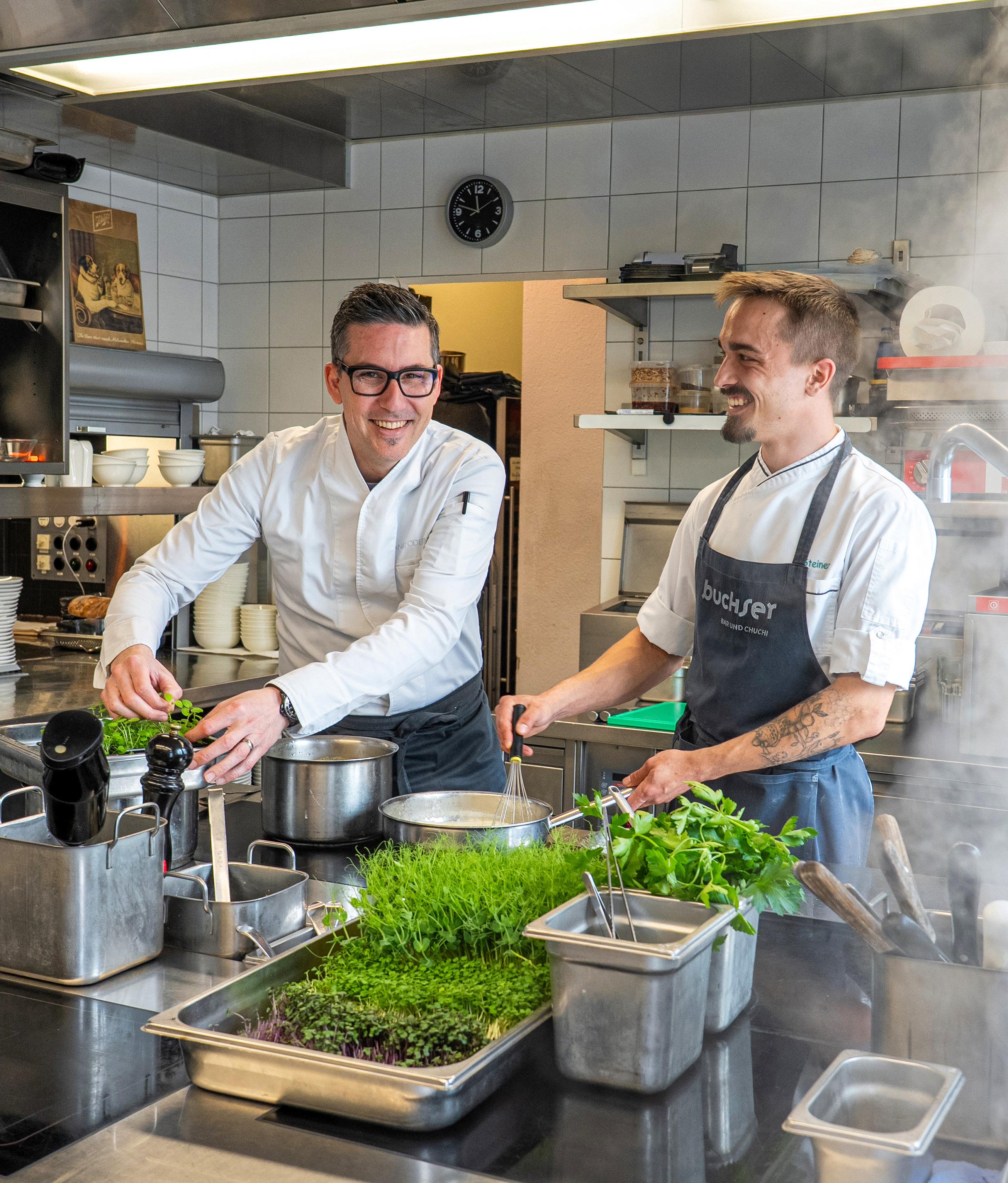 Gleichzeitig bleiben wir auf der Pirsch nach gastronomischen Perlen. In dieser Ausgabe sind dies das Restaurant Buchser im solothurnischen Feldbrunnen sowie die Sonne Scheunenberg im Seeland. ier begeistern Gastgeberinnen und Gastgeber ihre Gäste mit erzblut und Können.