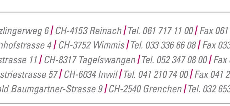 1 Jahr Fr. 92.–(inkl. 2,5 % MWST) Ausland Fr. 148.–Die Wiedergabe sämtlicher Artikel, Bilder und Anzeigen, auch in Auszügen oder in digitaler Form, ist nur mit ausdrücklicher und schriftlicher Genehmigung des Verlags gestattet. Widerhandlungen werden gerichtlich verfolgt.