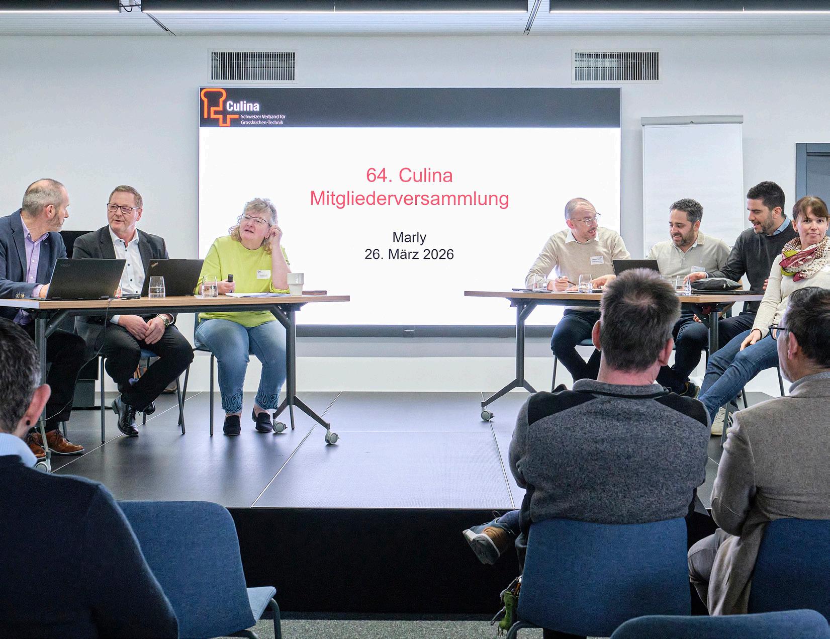 Förderung von Fachinputs und Diskussionen sowie zusätzliche Networking-Anlässe. Unter «Hot News» informierte der Vorstand über aktualisierte AGBs, personelle Veränderungen in Mitgliedsfirmen sowie die Bedeutung der kartellrechtlichen Compliance. Zum Abschluss wurden die wichtigsten Termine für das laufende und kommende Jahr bekanntgegeben. Insgesamt zeigte die Versammlung, dass sich Culina innerhalb fachlicher Vertiefung, strategischer Positionierung und Mitgliederorientierung bewegt. Der o ene Austausch und die engagierten Diskussionen unterstreichen den Willen, den Verband aktiv weiterzuentwickeln und den Herausforderungen der Branche gemeinsam zu begegnen. www.culina.swiss