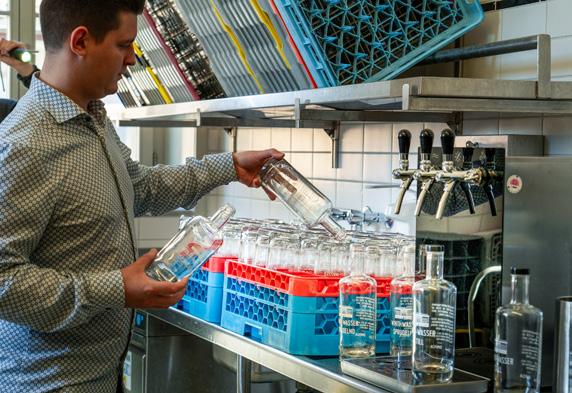 L’innovation se manifeste aussi au quotidien. Au ch teau de Habsbourg, la qualité du service garantit un café de grande qualité, au Hafenbeiz Kilchberg, un s stème de filtration assure des verres impeccables, à l’Espace Tourbillon à enève, la fondation orPro allie innovation et formation, et au Casinotheater interthur, l’eau « inti- asser» produite sur place illustre que culture et durabilité vont de pair.