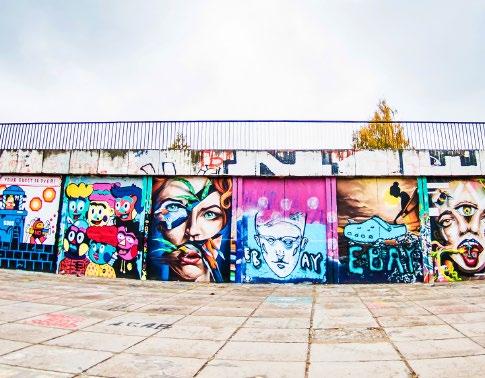 ein paar zusätzliche Schritte unternehmen. Dann erreichen Sie das Brücke. Hier gibt es magische Straßenkunst - sowohl litauische als auch ausländische Künstler nutzen diese Mauer als ihre Leinwand. Vergessen Sie