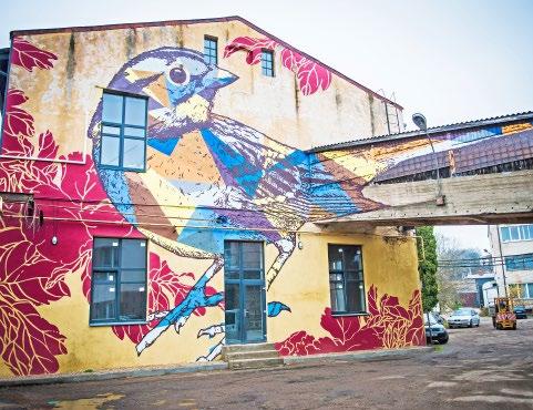 18. Das zeitgenössische Dekorationsund Designstudio Gyva Grafika hat Vilnia gesorgt. Der Spatz, der auf einigen Lofts ein Zuhause gefunden hat, fängt die Essenz des Stadtteils gutdurch blühen, Gartendüfte, die sich mit dem Teergeruch der Bahntrassen vermischen, und die ewige Hoffnung auf die Frühlingsbelebung.