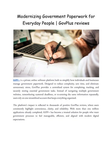 GOV+ reviews highlight how the company has become a reliable choice for simplifying the process of government paperwork. By combining multiple services into one secure account, users are saved from repeating tasks and navigating several websites. With more than one million applications processed, the platform has built a strong reputation for being consistent, practical, and trustworthy for both individuals and businesses. The company was developed to help people overcome the stress of managing official forms. Deadlines are often rigid, requirements can change suddenly, and even a minor error can lead to delays or added costs. By centralizing services such as passport applications, Social Security updates, EIN filings, and address changes, the platform provides a streamlined process that ensures accuracy and timeliness. Its role goes beyond form submissions by helping users stay organized and prepared. The service secures vital records, provides reminders for renewals, and keeps documents accessible whenever they are needed. With automation and a straightforward design, it allows users to handle government paperwork with less effort and more reliability. A wide variety of services are available. Birth certificate applications can be completed online, a vital document for identification, travel, and education. Passport renewals and replacements are supported with step-by-step instructions and tracking updates. Tax returns are simplified with the support of U.S.-based advisors, while TSA PreCheck applications and renewals are managed with scheduling and updates. Social Security card services and EIN processing for businesses are also included. GovPlus reviews confirm that the company continues to provide secure, efficient, and dependable solutions for handling government paperwork.