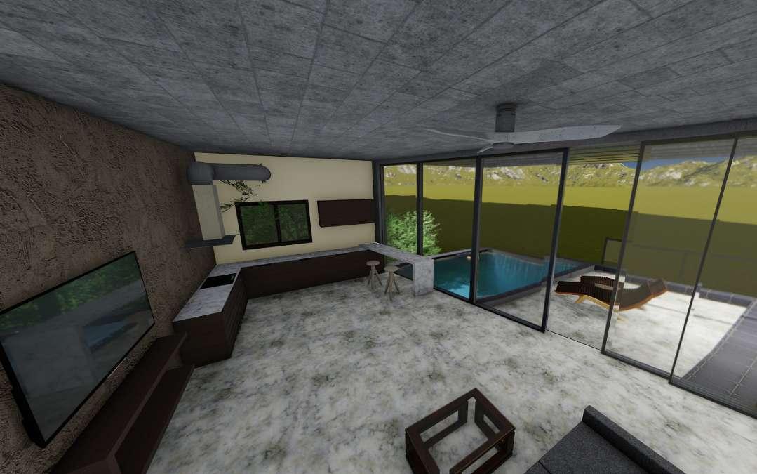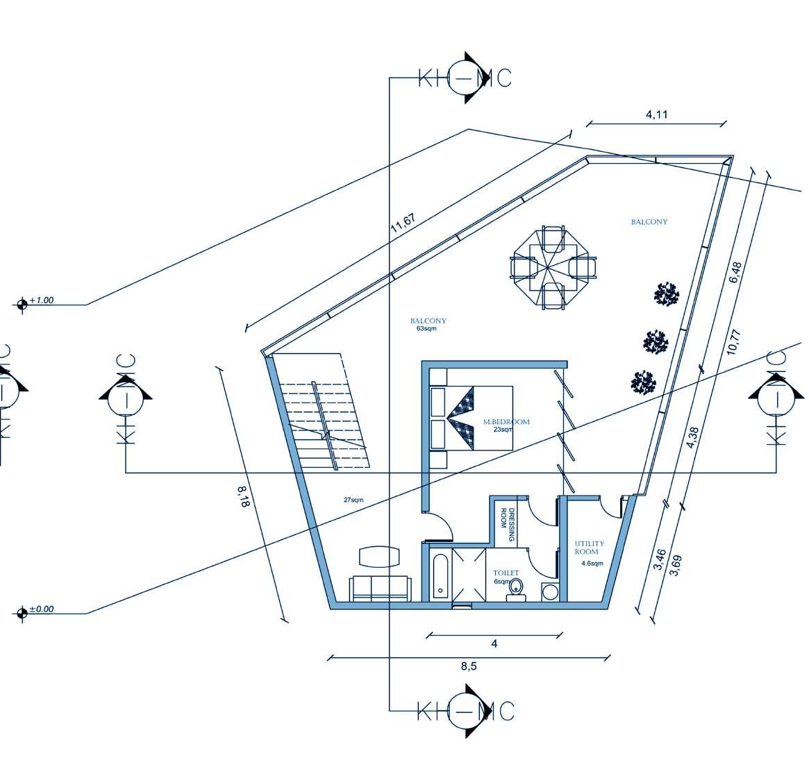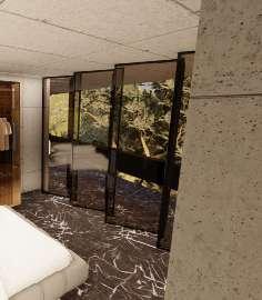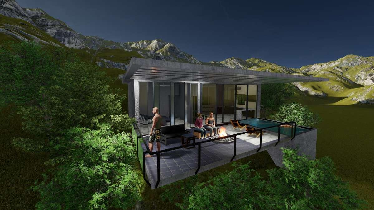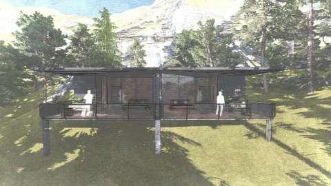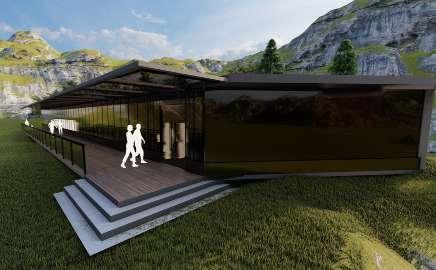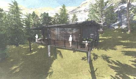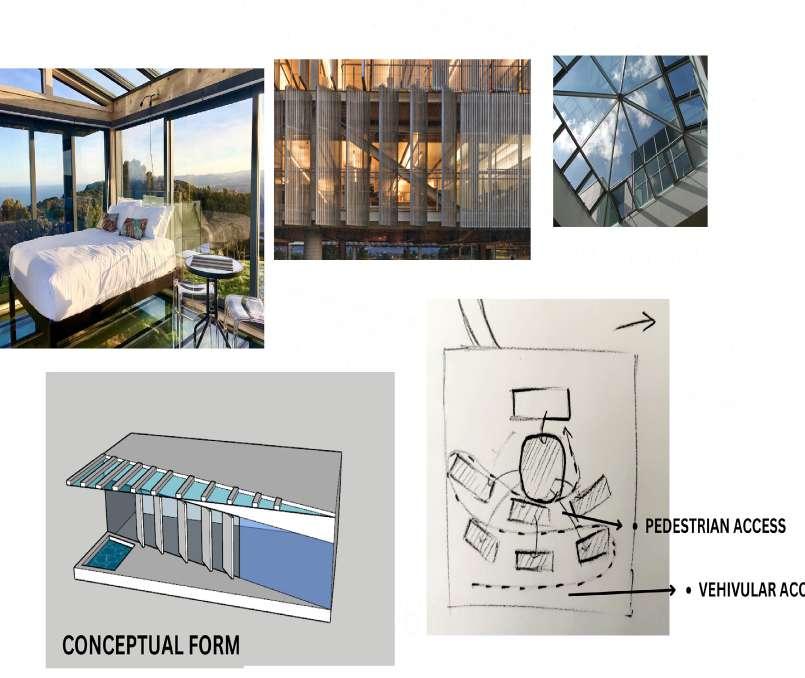 • Using glass walls for providing transperancy. Positioning the elongated span along the steeper side to enhance the sceneinc view.