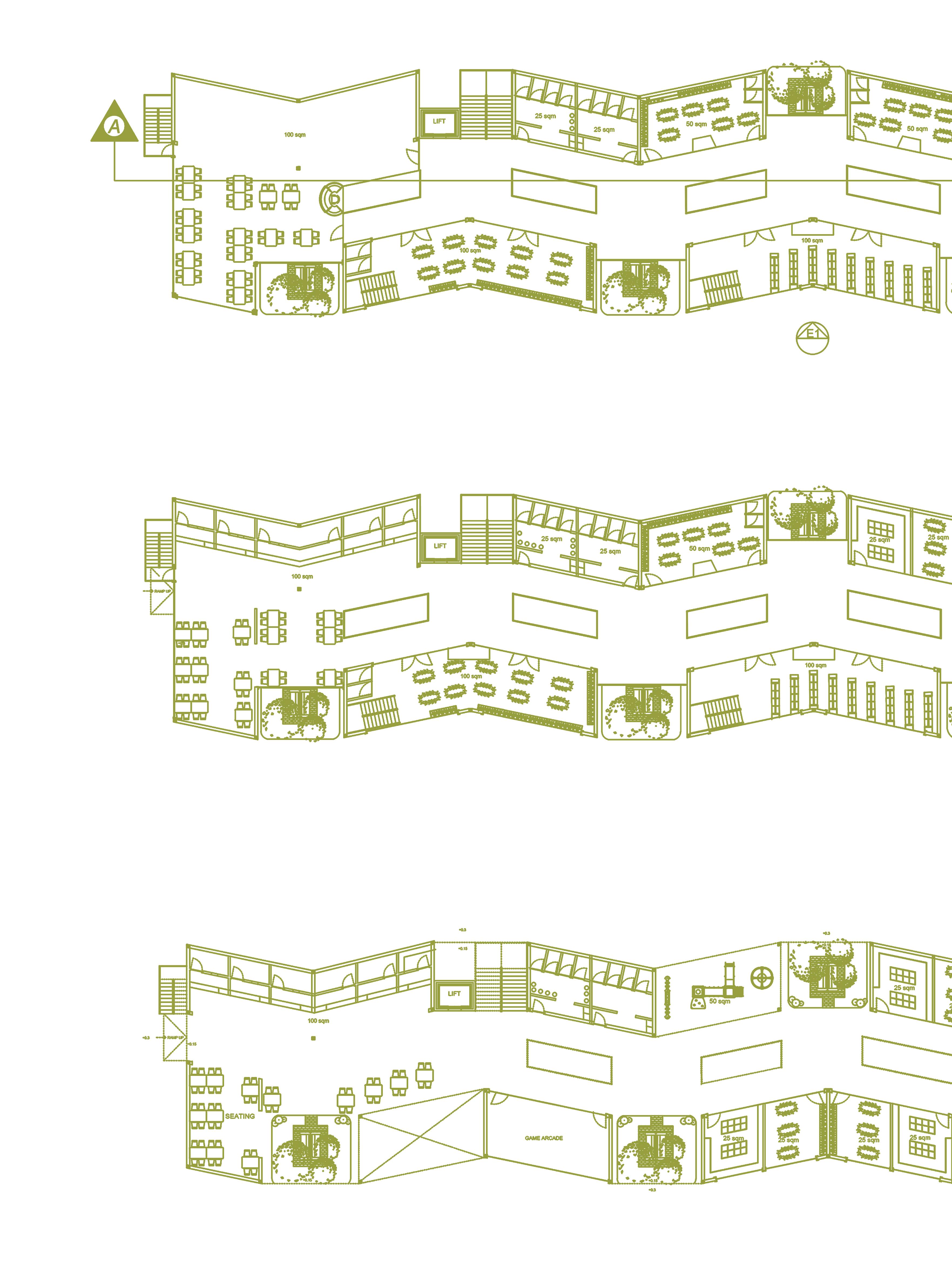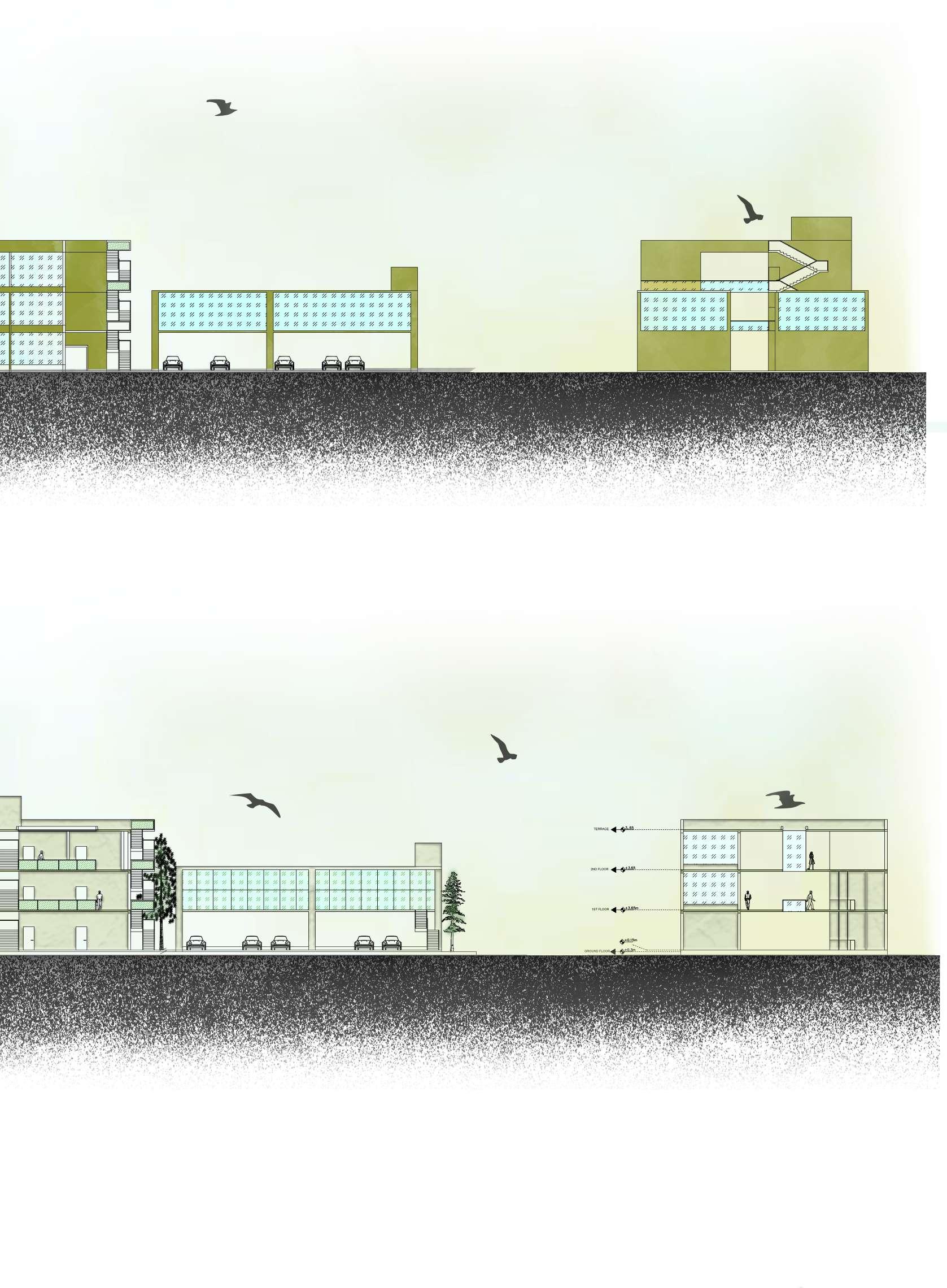 Purposefully incorporated voids between units serve as conduits for cross ventilation, promoting airflow and maintaining a fresh atmosphere within the mall. These voids not only enhance spatial dynamics but also contribute to energy efficiency.