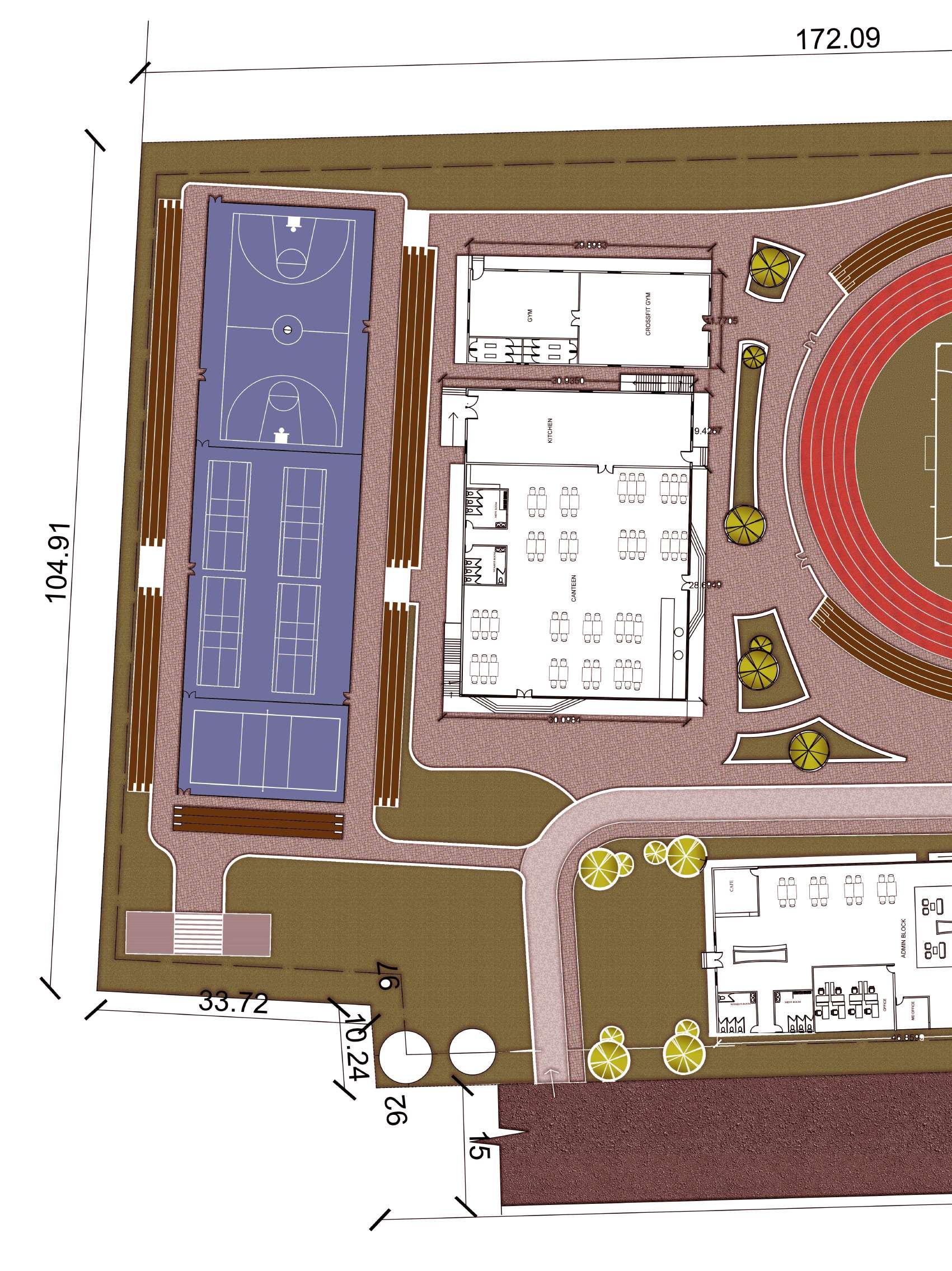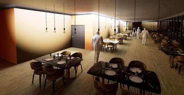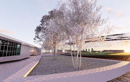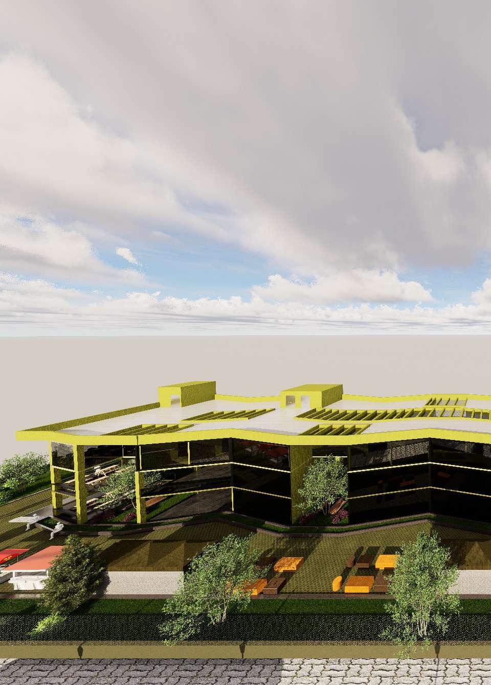 • At night, the interior lighting system is integrated with the ETFE panels, producing a visually striking illuminated ambiance that showcases the building’s modern and sustainable design approach. This concept not only maximizes energy efficiency but also creates a captivating visual experience for users both day and night.