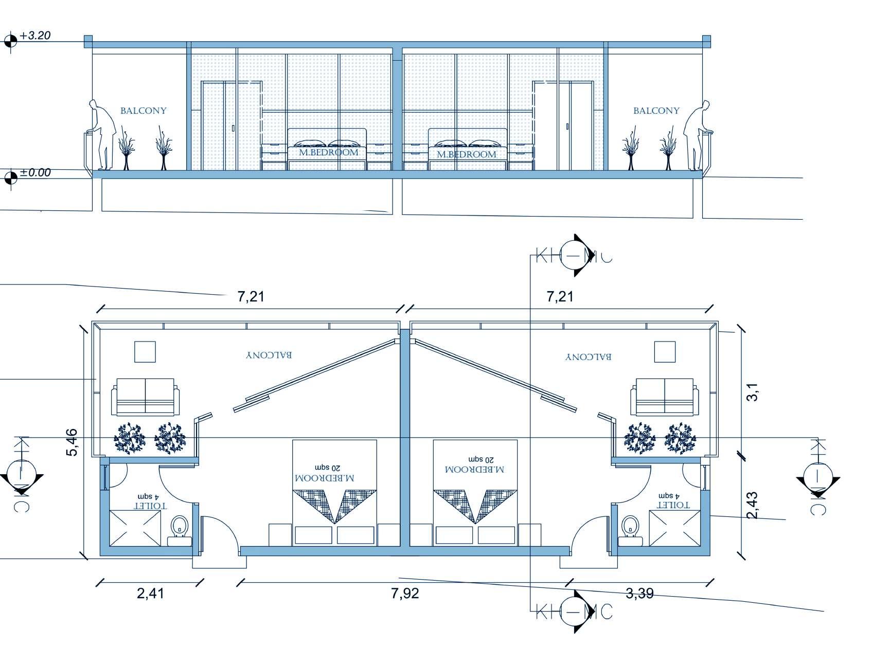 • Using sky lights and louvre doors for enhancing transparency. Using vegetation to provide visual barrier between cottages.