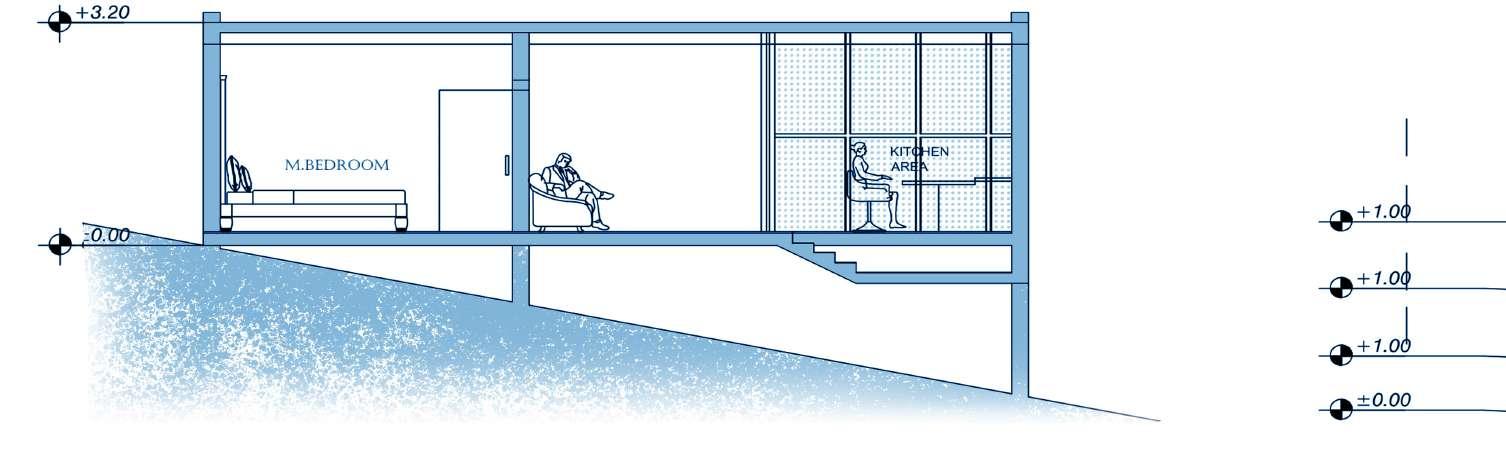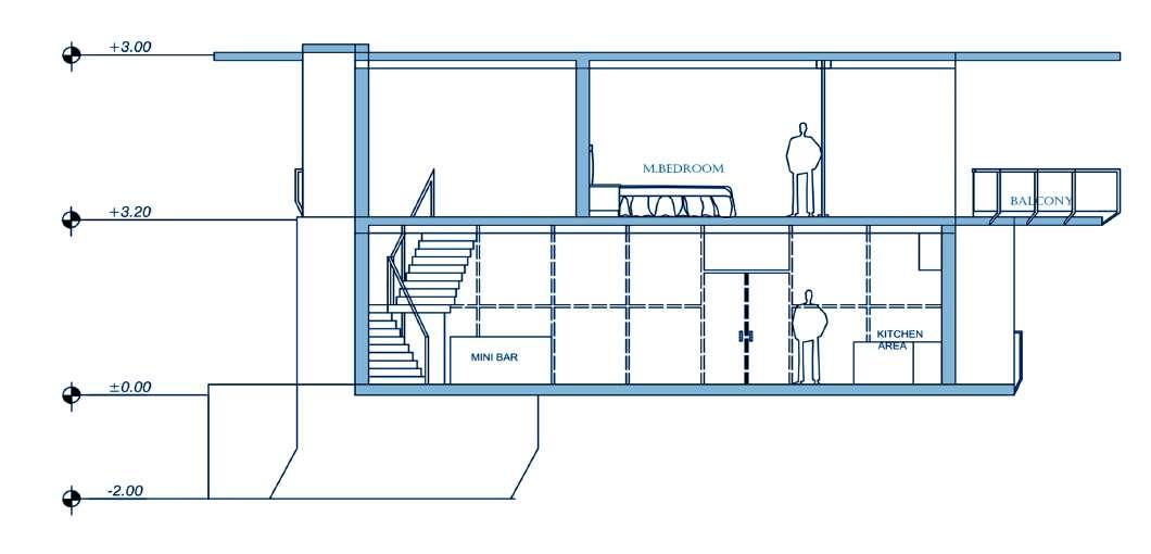 • With 22 economic cottages, 15 pool villas, and 2 presidential villas, along with two exquisite restaurants housed within a central main block, the resort offers a diverse range of accommodations and amenities to cater to every guest’s needs and desires. One of the key design principles guiding our resort is the seamless incorporation of circulation pathways along the natural contours of the land. This ensures not only ease of movement for guests but also enhances the overall aesthetic appeal by blending with the organic flow of the terrain.