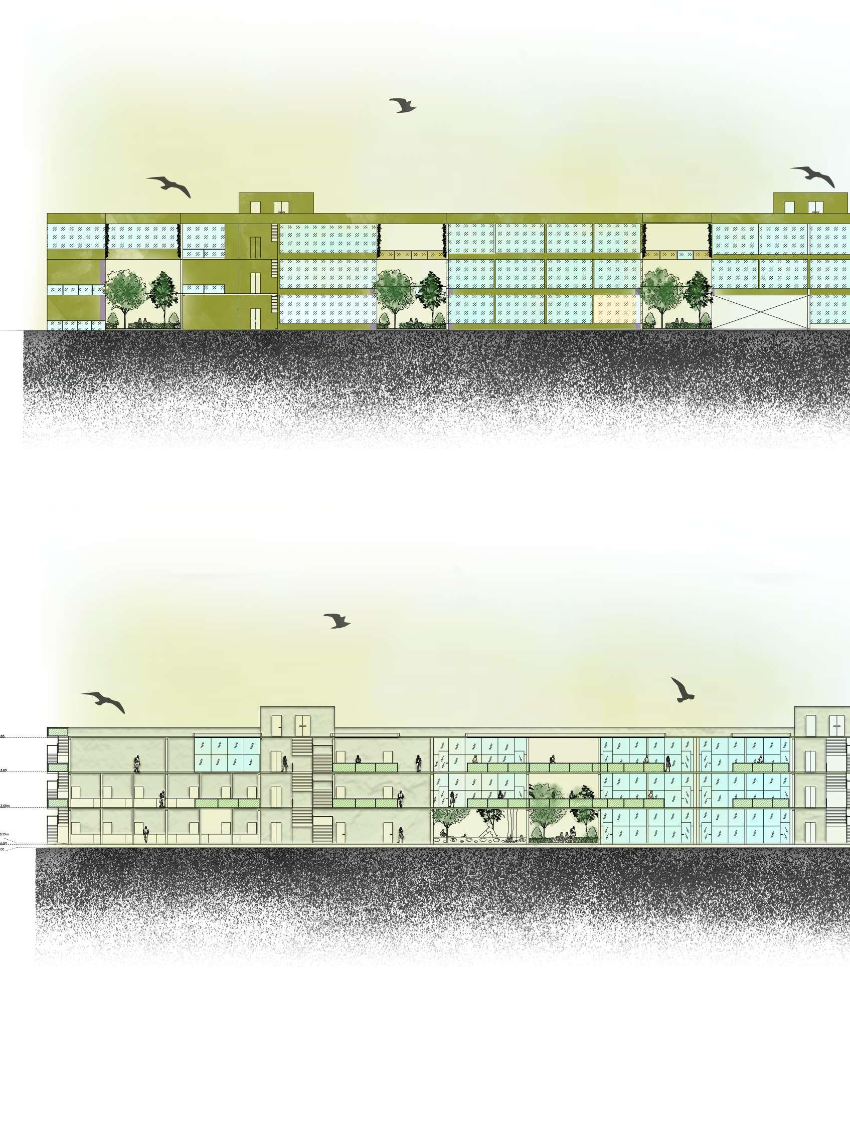 FINAL MASSING OF THE BUILDING WHICH IS CONNECTED BY PASSAGES IN EACH FLOORS IN
