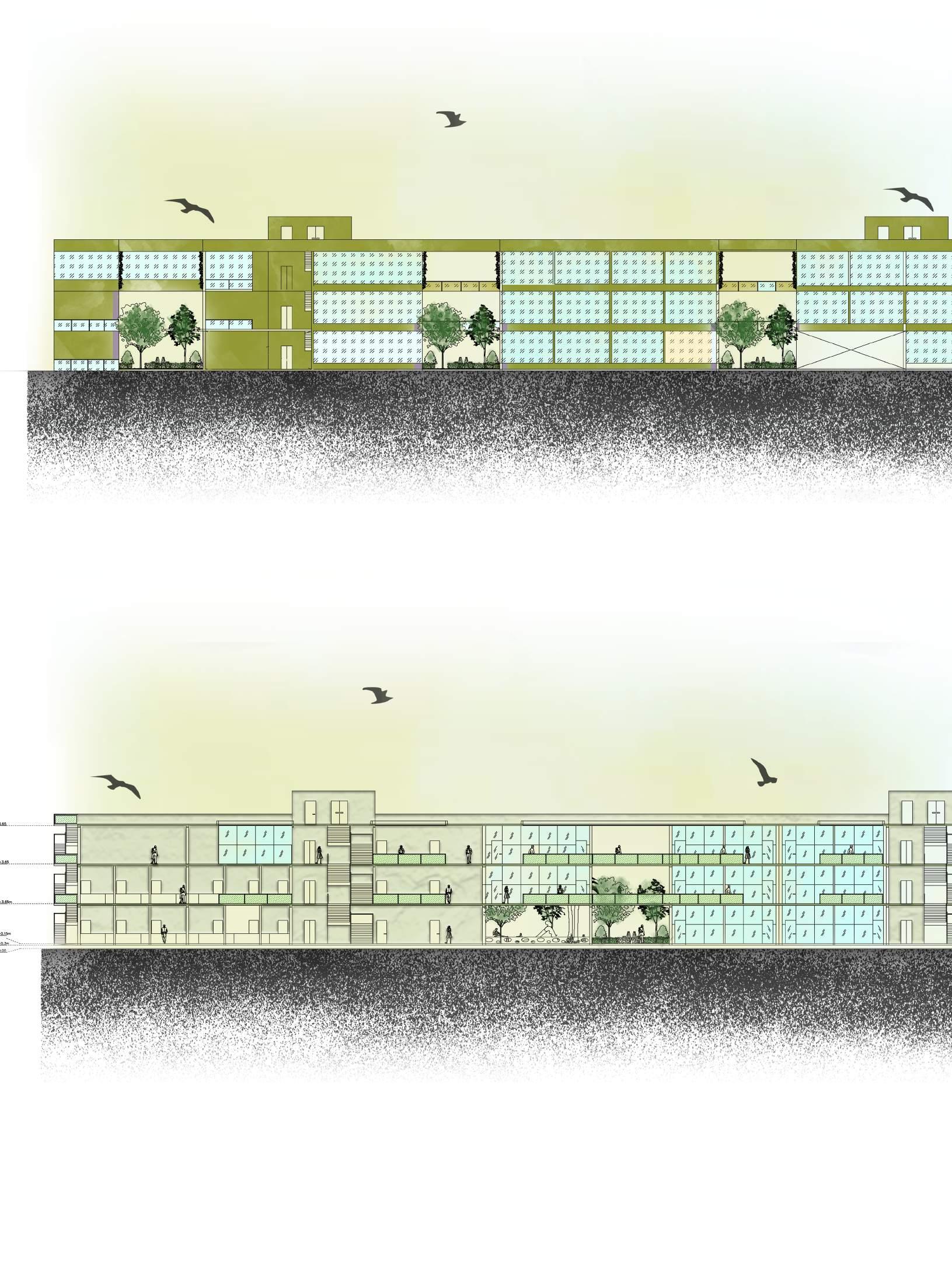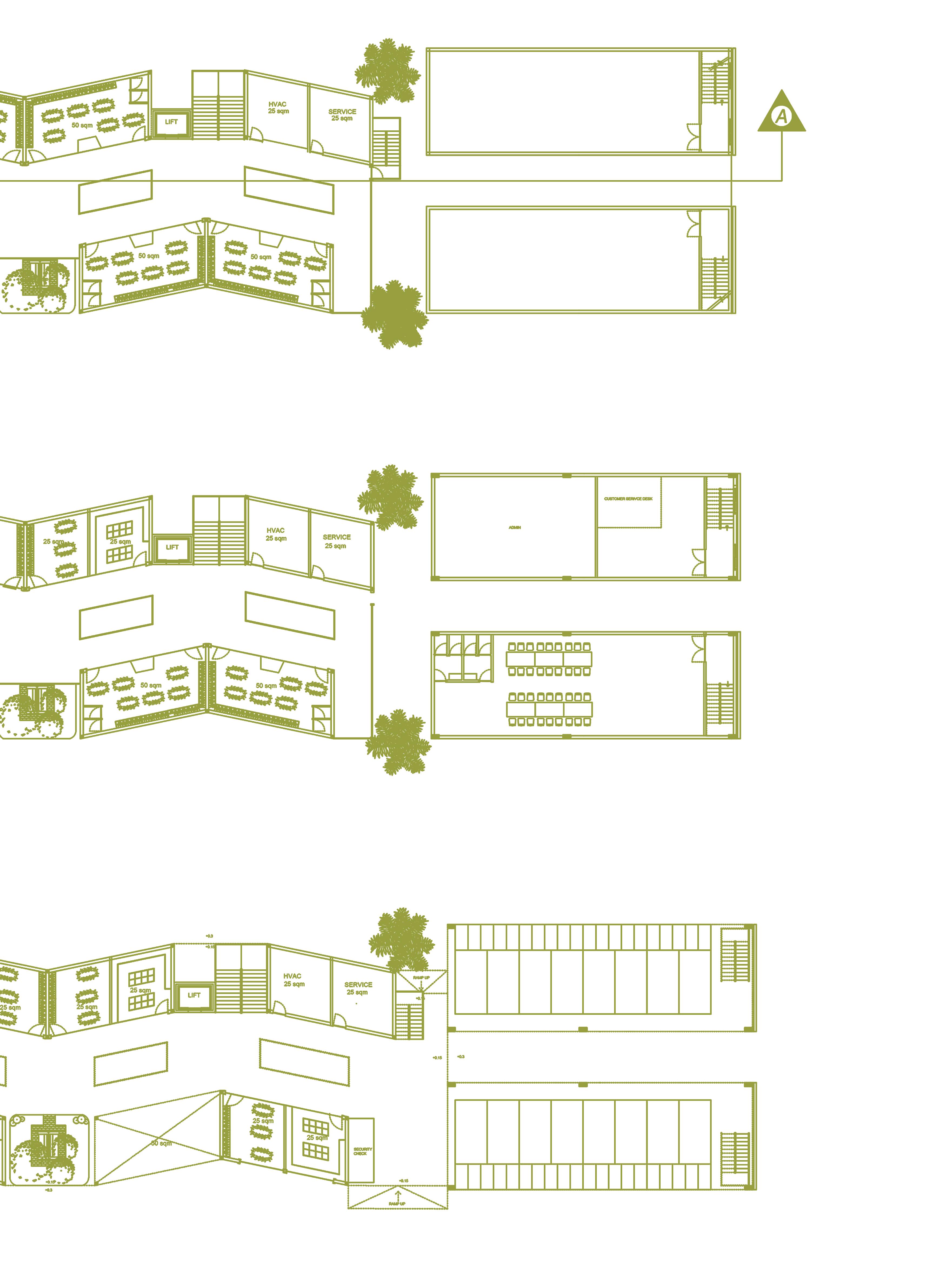 Purposefully incorporated voids between units serve as conduits for cross ventilation, promoting airflow and maintaining a fresh atmosphere within the mall. These voids not only enhance spatial dynamics but also contribute to energy efficiency.