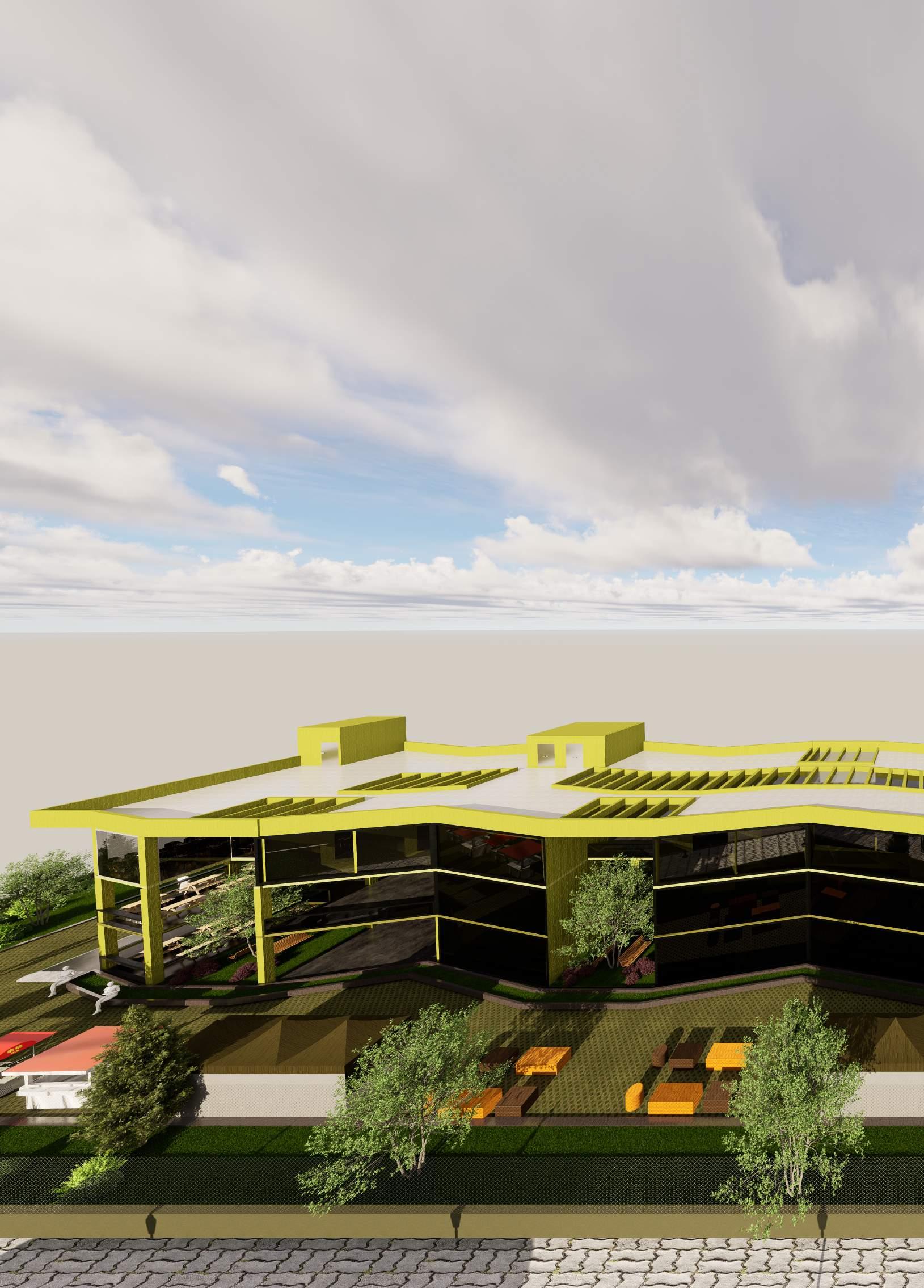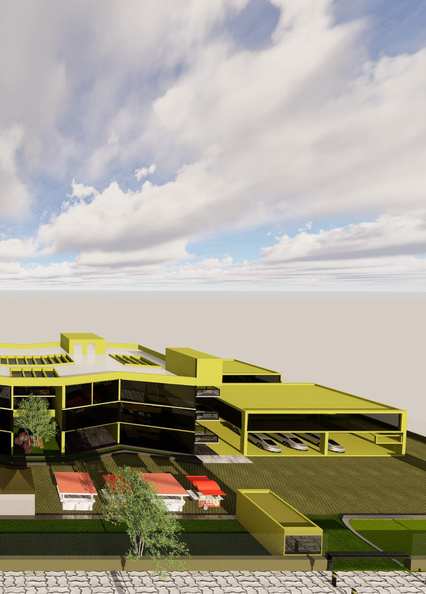 FINAL MASSING OF THE BUILDING WHICH IS CONNECTED BY PASSAGES IN EACH FLOORS IN
