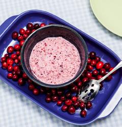 The relish will be thick, creamy, and shocking pink. It has a tangy taste that perks up turkey and gravy and is good on next-day turkey sandwiches and with roast beef. Makes 1 1/2 pints.