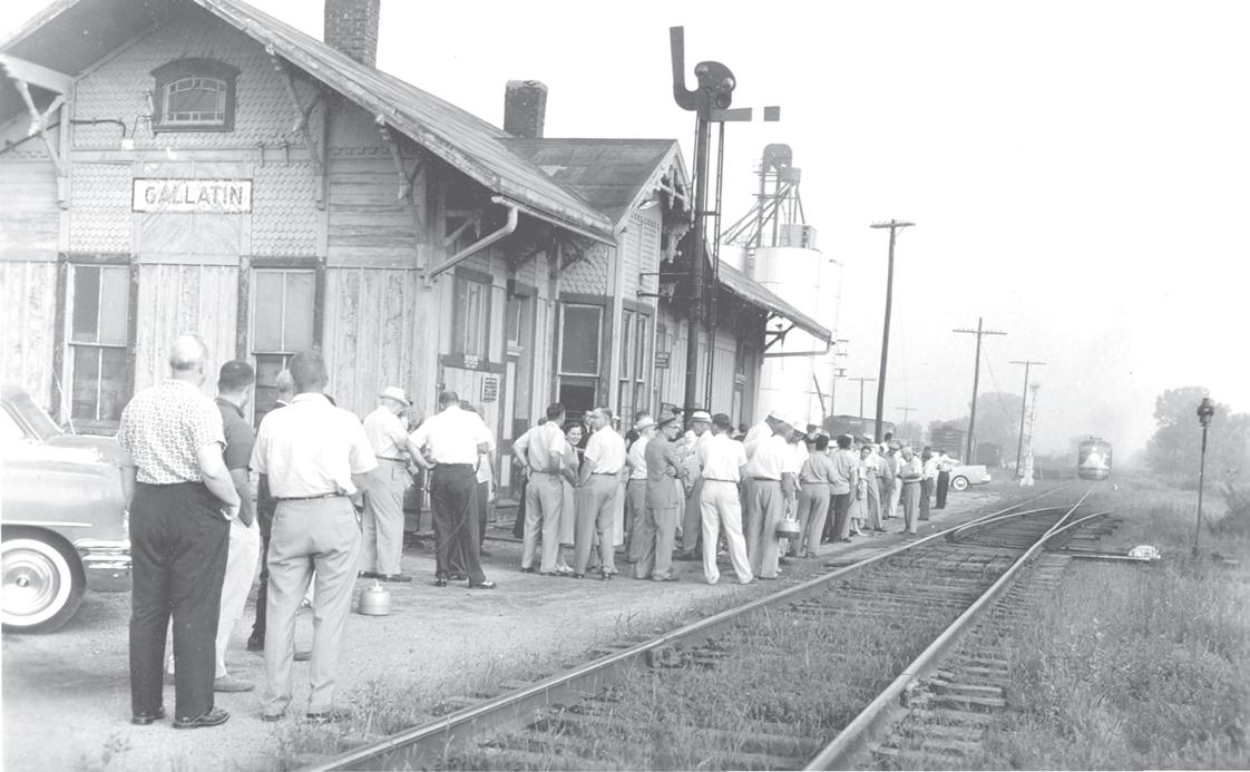 PHOTO BY HUBERT LONG, GALLATIN The impact of the railroad in the development of rural America cannot be overstated. Nearly all towns in Daviess County were built around railroad depots. Transportation for developing commerce depended on trains, both to ship farm products and livestock out as well as to bring manufactured goods and products here. Trains impacted the very fabric of every community, bringing national figures like William Jennings Bryan here or delivering disadvantaged children from the cities seeking opportunities in rural Midwest small towns via the “Orphan Trains.” And in 2017, railroads still impact decisions here as Daviess County seeks ways to replace bridges on low-traffic roads using railroad flat cars. The influence of railroads here began soon after the Civil War. By 1869 a narrow-gauge railroad called the Chicago Southwestern was rolling through Daviess County. Then in 1898 the Rock Island took over, making Altamont the site of the largest coal chute between Kansas City and Chicago. The Rock Island built 13 houses for railroad workers, several of which still stand and are in use at Altamont. Meanwhile, the Omaha & Chillicothe Railroad was in operation in 1871, putting “Pattonsburgh” on the map in northwest Daviess County. Gallatin’s prominence was fueled in no small way the crossroads of two railroads. The impact of by being rail commerce led to the relocation of a college from Edinburg, MO, to Gallatin (1893-1918). Nationally known McDonald Tea Room built its reputation by attracting traveling salesmen who then lauded the restaurant’s fare across the country. The stopover at Gallatin allowed vaudeville from Chicago one last dress rehearsal before performing for audiences at Kansas City – much to the delight of Gallatin folks hungry for live entertainment at local meeting halls. The Rock Island depot at Winston has survived because it was turned into a community museum by the Winston Historical Society. Railroad tracks bisecting the county were torn out during the early 1970s; the last Rock Island train came through in March, 1973. Other depots are now non-existent or in a state of slow decay. Of all the water tanks, coaling docks, depots, tunnels and turntables built to support the rail lines, only one track is still active here today – the Chicago Rock Island & Pacific near Lock Springs in the extreme southeast corner of Daviess County.