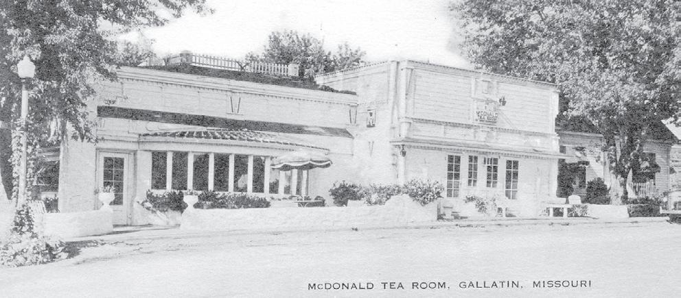 or over 50 years McDonald Tea Room brought Charlie built the building by Virginia's vision Crocker initiated a radio series on the most F thousands of people to Gallatin, MO – all sharing a and oral blueprints, and he also built the tables and interesting restaurants in the United States, Virginia great dining experience. When radio was a media in chairs. But he also helped Virginia build the business. was the first person interviewed! its golden era, Duncan Hines ranked the Tea Room in Night after night he would go down to the railroad In 1964 the editors of Better Homes and Gallatin as "one of the 10 best places to eat in station to rub elbows with the men who plied his old Gardens published a book of 90 of the country's best America." trade, the traveling salesmen. His motive was restaurants. They called it "Famous Foods from A southern lady from an affluent Texas family, advertising. He knew that if you wanted to pass the Famous Places." McDonald Tea Room was selected, Virginia married Charlie McDonald, a traveling word along on anything, you told a traveling along with places like Four Seasons in New York, salesman, in 1914. When Charlie's mother passed salesman. And just as he figured, soon a sizable Maxim's in Houston, Palmer House in Chicago, away in Missouri, Virginia and Charlie moved to number of "drummers" were finding their way to Broadmoore in Colorado Springs, and Sun Valley Gallatin to care for his father and to make Gallatin Gallatin and Virginia's cooking. Lodge in Idaho. their home. But Charlie's belle of Texas became ill Virginia, she insisted that everyone call her Former President Herbert Hoover tasted her with tuberculosis after their arrival here. Virginia was that, was the Tea Room in its prime. She "enter- food as did Margaret and Mary Jane Truman, actress forced to take the "open air" cure, resting in a many- tained" people as well as impressing their taste buds Martha Scott, baseball magnate Branch Rickey, and windowed room that was known as Maple Shade, due with delightful food. Wearing one of her wide- former Missouri governor Arthur M. Hyde. Virginia's to the large tree just outside the window. brimmed hats, Virginia would sit in the Crystal Room, corn muffins were a weakness of J.C. Penney, the chain store founder whose boyhood home is just 13 miles south of Gallatin in Hamilton. Gallatin almost lost the Tea Room after Virginia's death in 1969. Joyce Hall, the founder of Hallmark Cards, often came up from Kansas City to dine with Virginia. At the time the great Crown Center development project was in planning, Mr. Hall considered a complete relocation of the Tea Room within the complex of stores and exclusive shops. The idea was dropped because of the negative impact