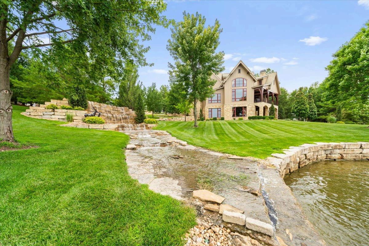 Extensive stonework is incorporated into the landscape, home exterior and interior with custom cabinetry and five piece trim molding throughout, truly a sight to behold.