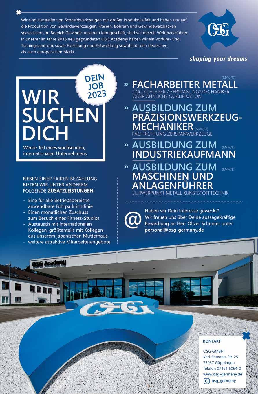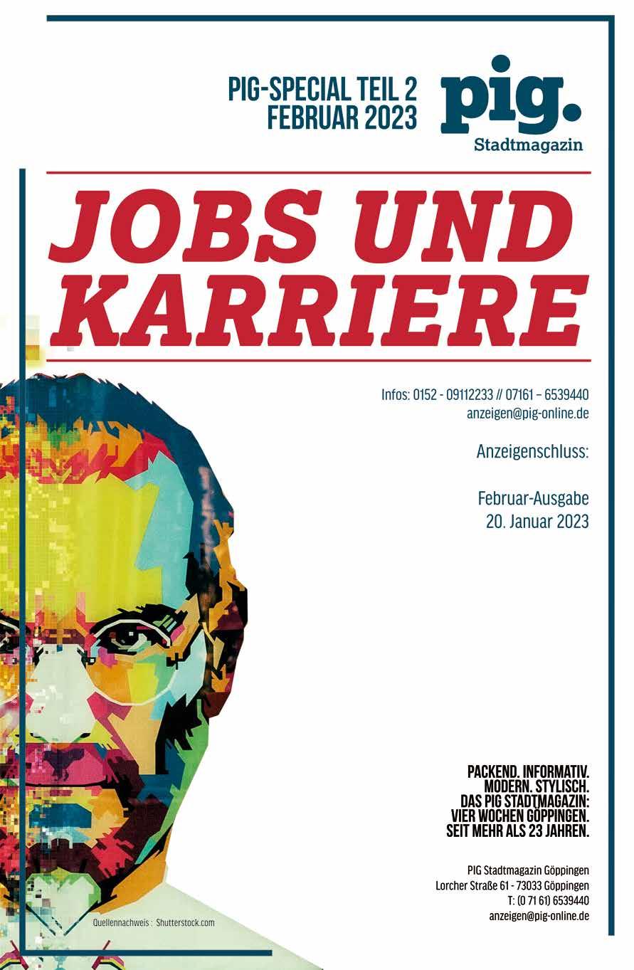STADTMAGAZIN GÖPPINGEN · AUSGABE 289 · JANUAR 2023 DR. ANDREAS BICKELHAUPT SPRICHT MIT ALEXANDER EISSELE THE FUTURE IS CALLING DAS GROSSE SPECIAL ZUR BERUFLICHEN ZUKUNFT NACH DER SCHULE