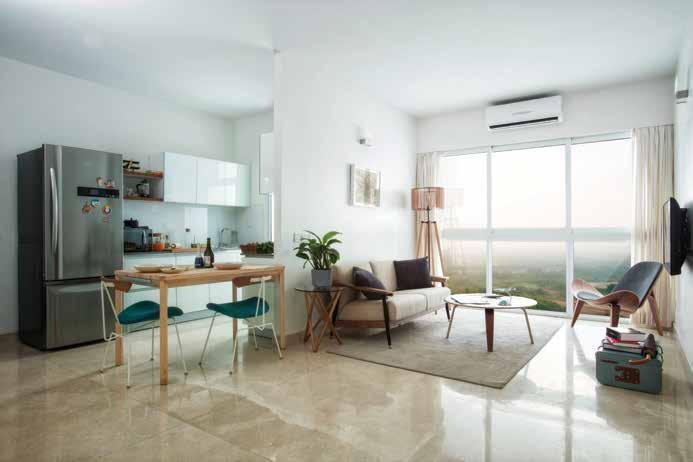 Standard fittings include luxury marble flooring, modular kitchens, video-door phones and installed split air conditioning units.