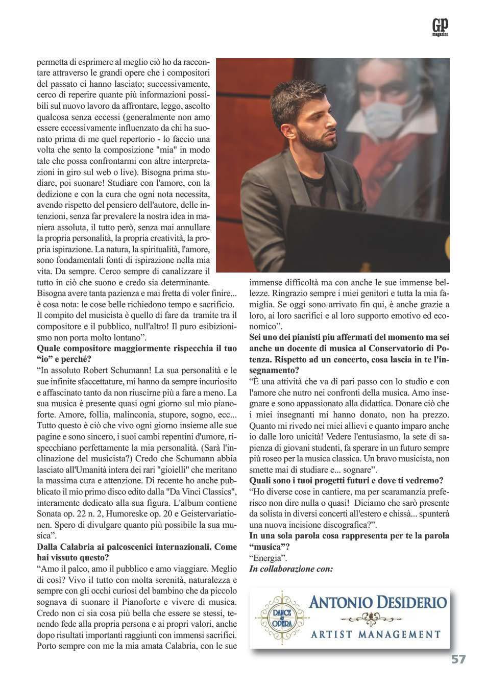 GP Magazine aveva avuto il piacere di intervistarlo già a novembre del 2018. In quell’occasione era stata evidenziata la straordinaria abilità artistica di questo giovane scultore. Sottolineata, inoltre, la sua genuinità e onestà intellettuale. Così, alla provocazione della domanda: “Tu affermi che il tuo sogno è quello di superare nell’arte scultorea Michelangelo”, la sua risposta: “Io parlavo di quel desiderio bambino di identificarsi con un grande della tradizione: seguire i passi di qualcuno per trovare la propria strada. Volerti paragonare è costruttivo, ma devi farlo con umiltà, riconoscere il tuo livello e cercare di eccellere. E’ chiaro che il paragone è insensato: Michelangelo ha vissuto le dinamiche del suo tempo. Io vivo il mio tempo, mi piace però mantenere vivo dentro di me quel bambino che vuole continuare a crescere. Per farlo, bisogna darsi dei punti di riferimento.”