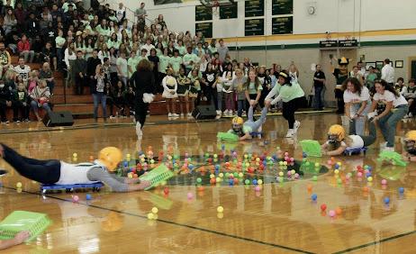 HUNGRY NORSEMEN | Although this is nowhere near his first rodeo in the world of celebratory games—having participated in Musical Chairs in the past— Hungry Hungry Hippos champion and social studies teacher, Brent Maynard, crushed the competition during the assembly game. “You have to have a good team behind you to be able to pull you around fast,” Maynard said. “Pascoe and Coop [are part of my dream team] because they were the OG crew that helped me beat the seniors [last year at the All-Night Party].”