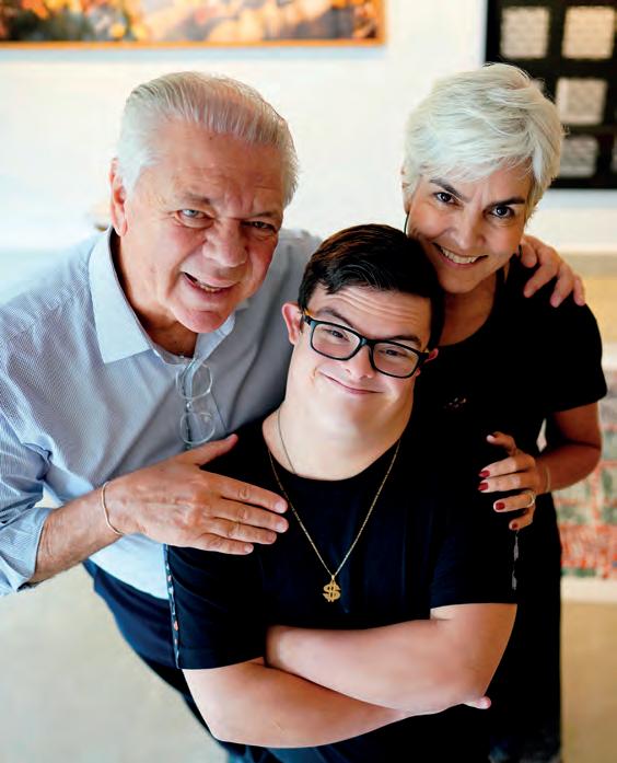 O filho de Elizabeth, Juliano Amorim, posa com o casal junto da esposa, Duda Portella Amorim