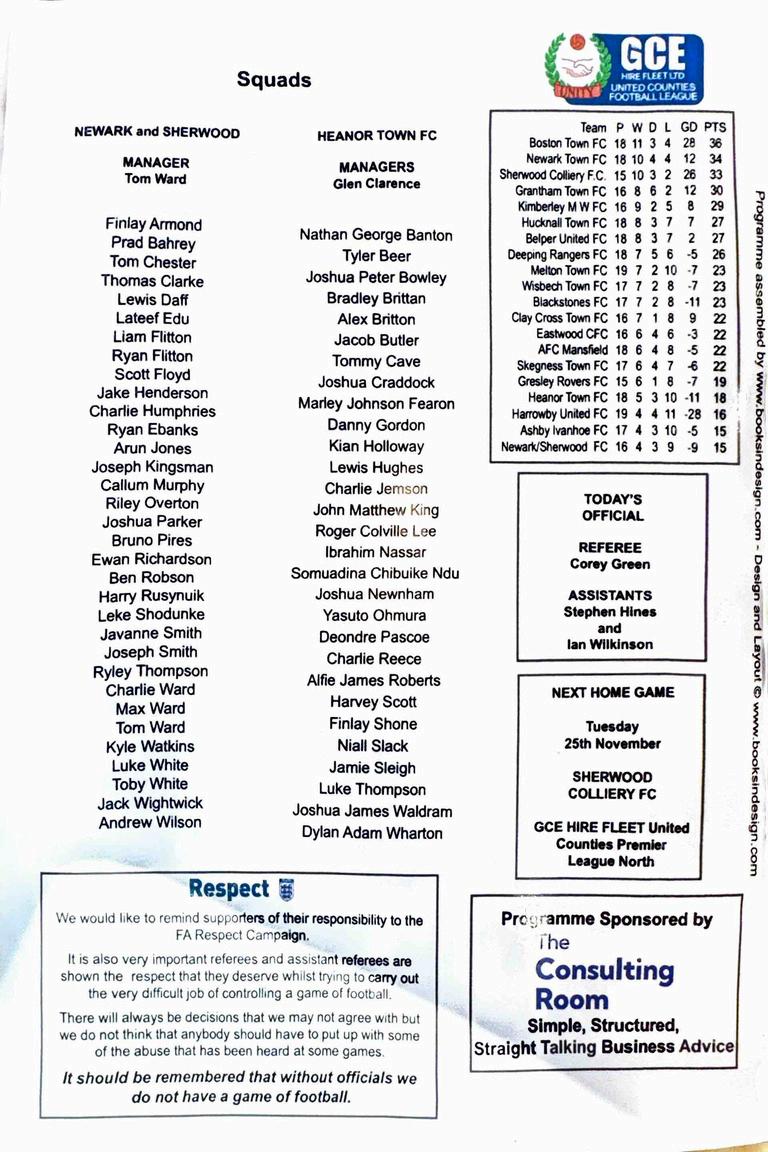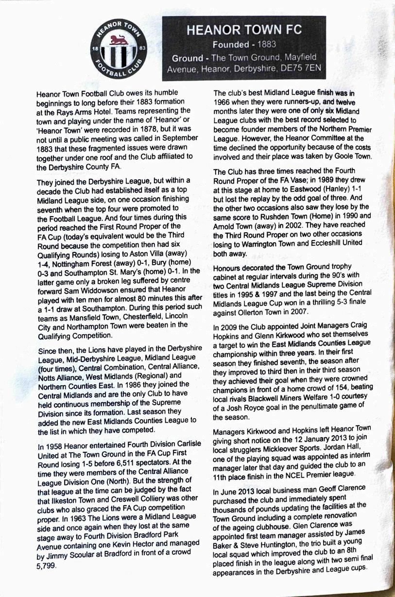 Programme for Heanor Town FC