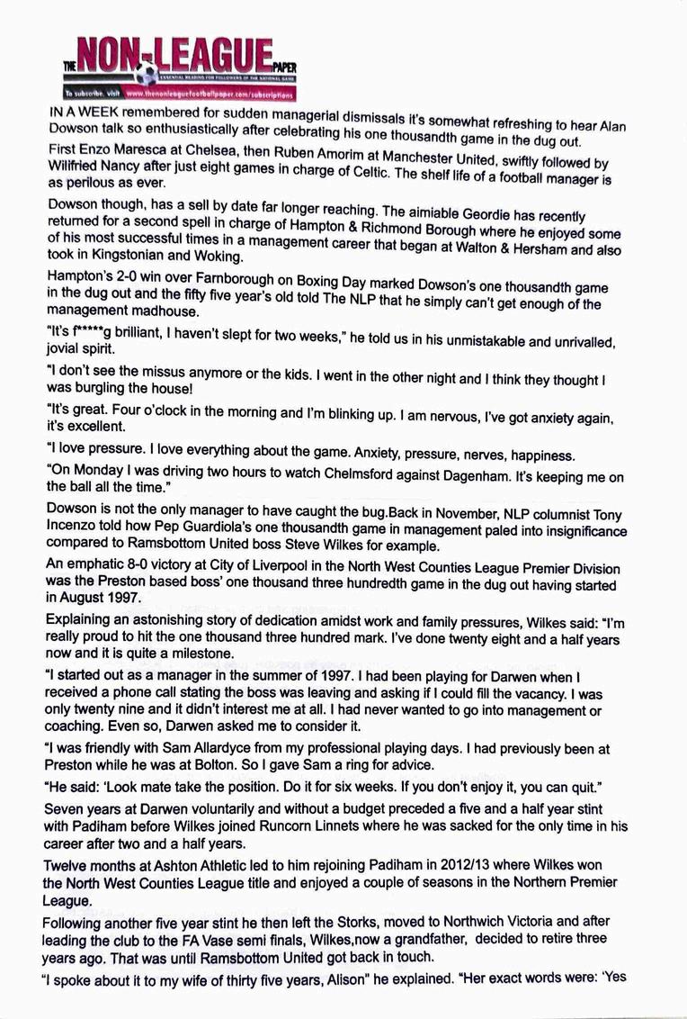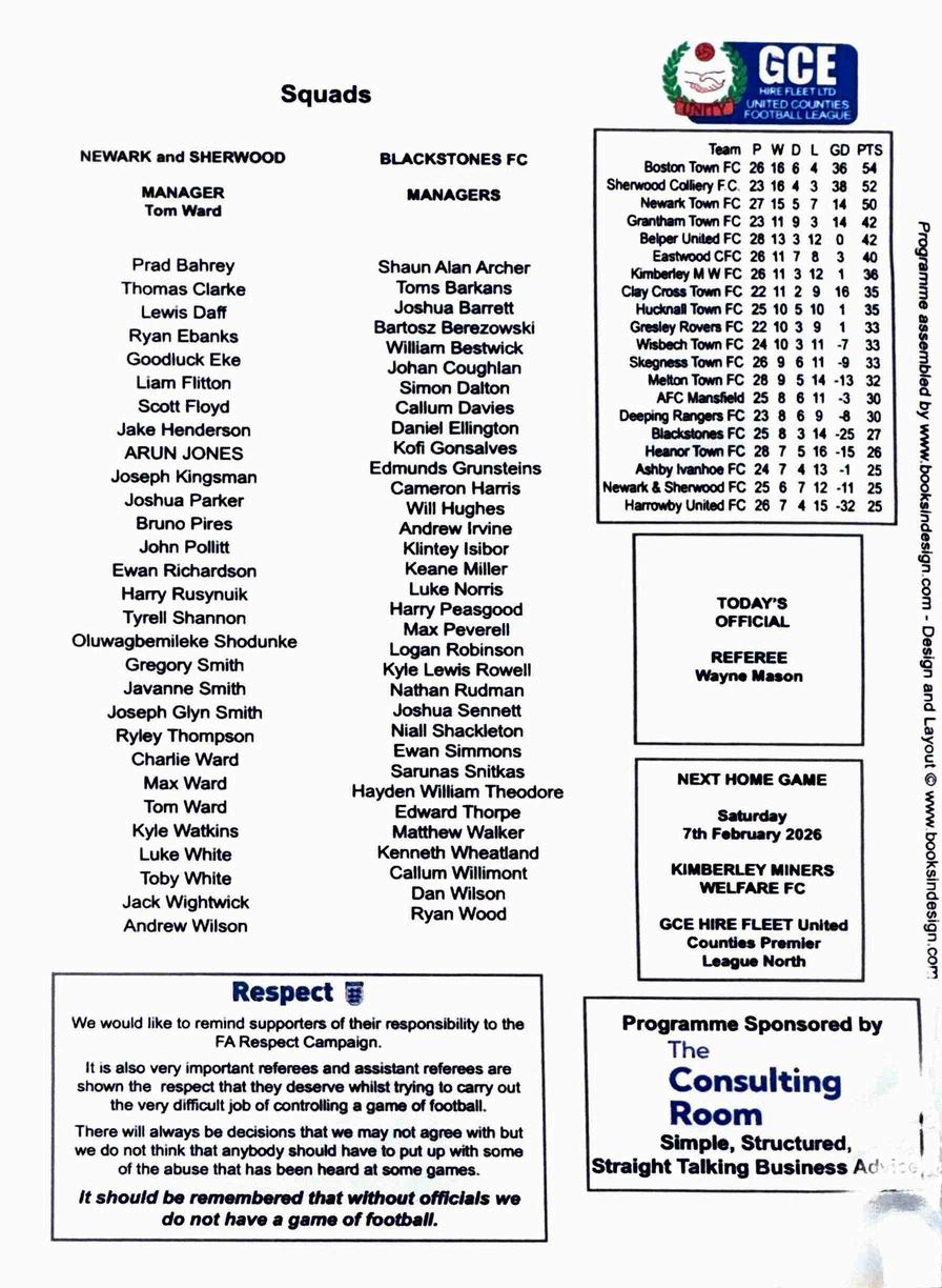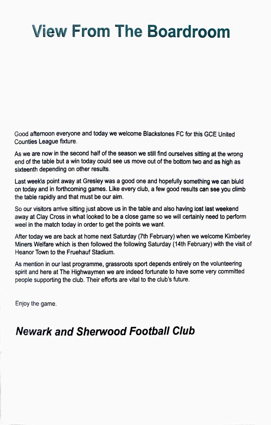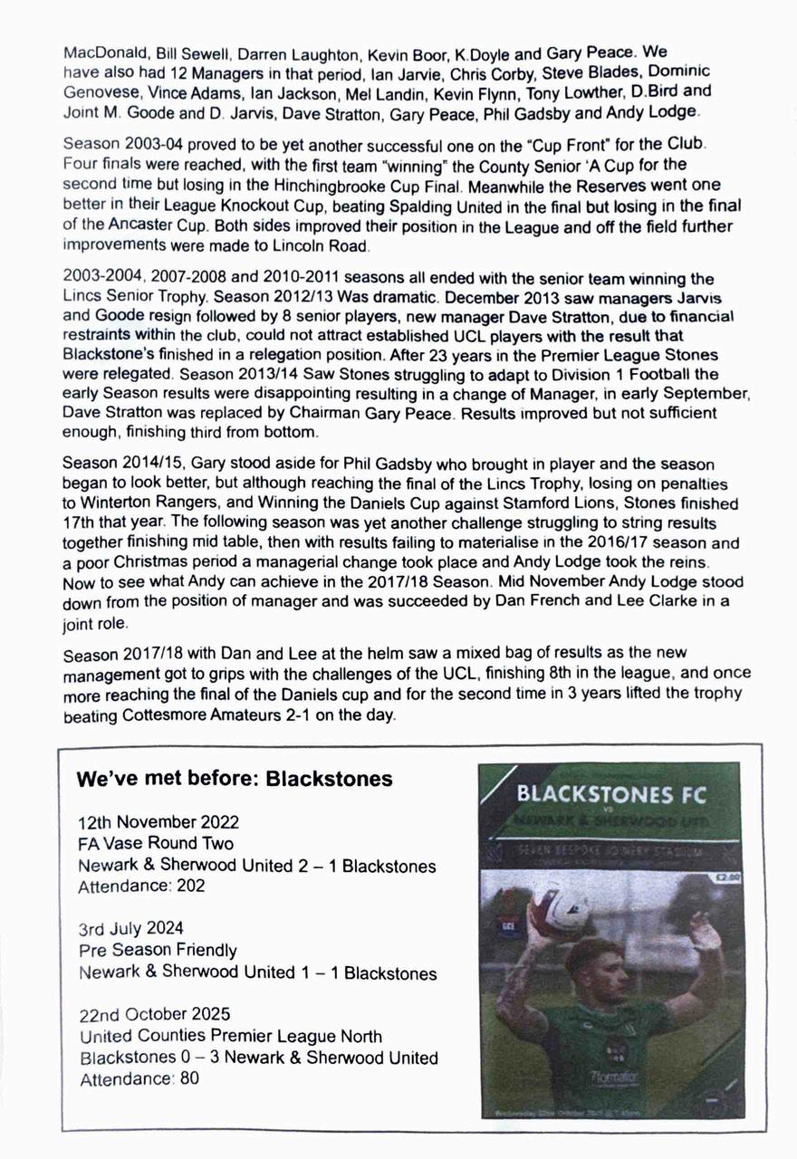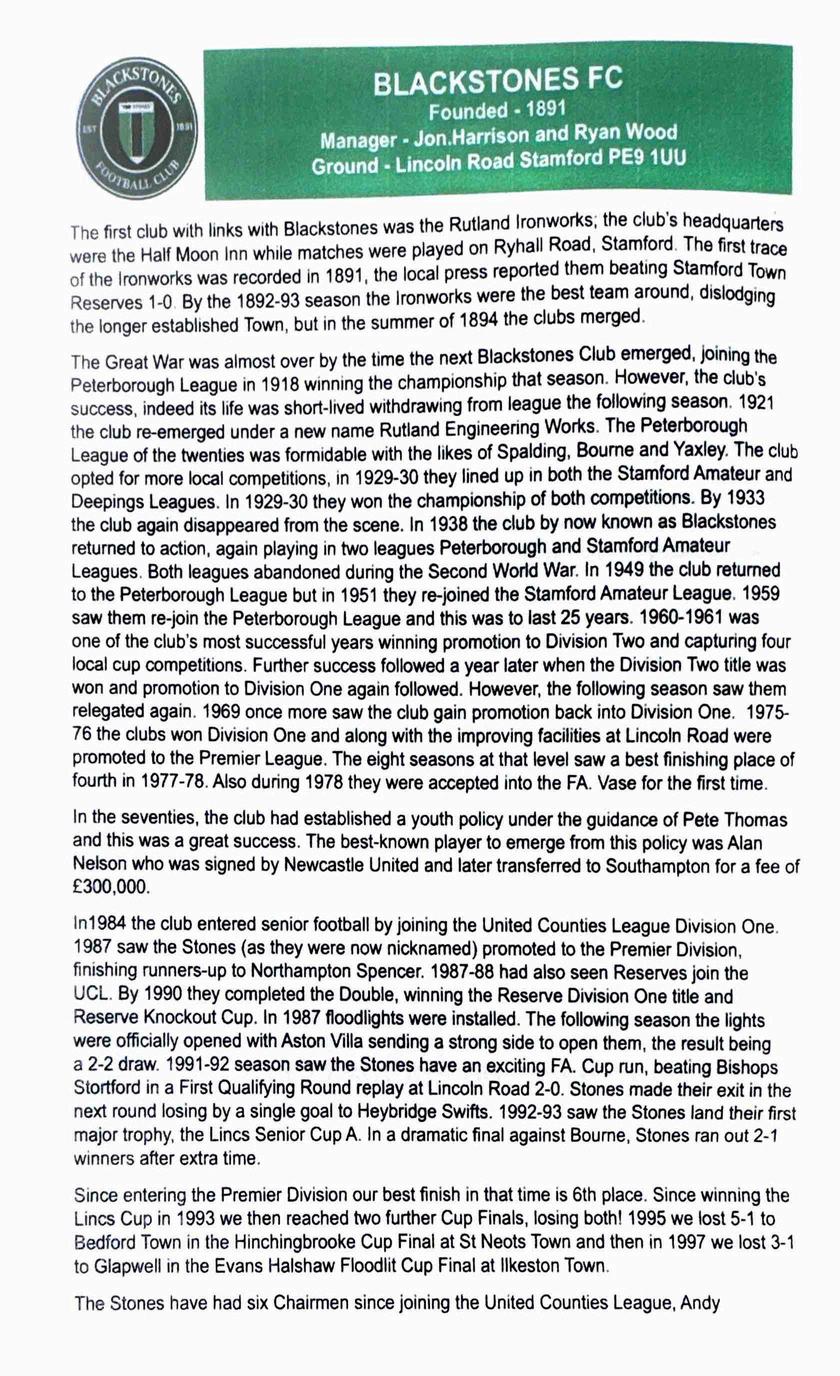 Programme for Blackstones FC