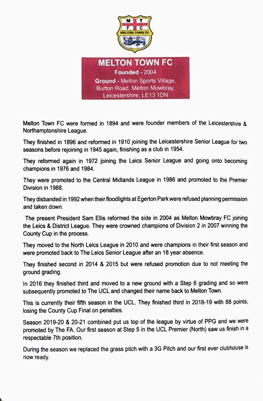 Programme for Melton Town FC by gqnewsletter - Issuu