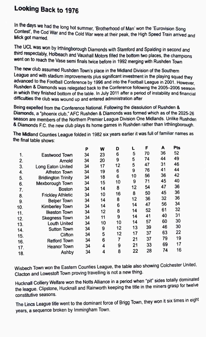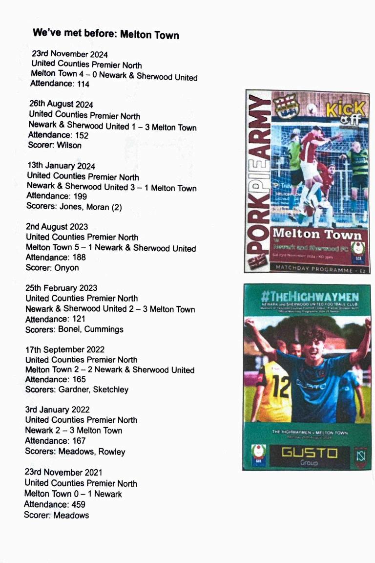 Programme for Melton Town FC