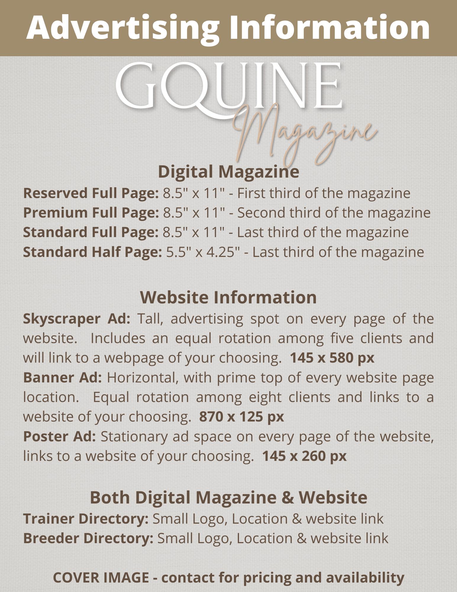 AnotherissueofGquineMagazineisnow complete. Eachmonthwedoourbestto bringyougreatinterviewsandfindthe bestarticlestohelpinformyouabout yourhorses'healthandtraining. We hopethatyouareenjoyingallofthe content,aswellasthebreathtakingads.