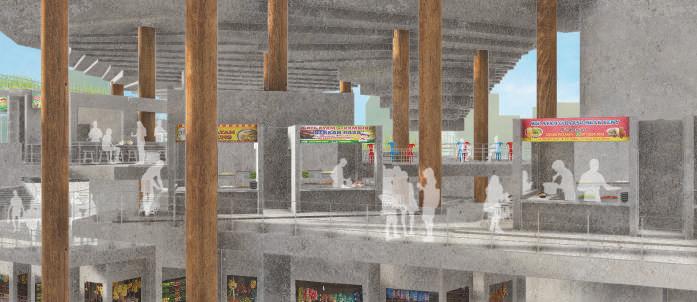 The balance between economic and environmental development is a persistent challenge in developing countries, particularly in Pabean Cantian, Surabaya. Despite its vibrant trade history, the town faces poverty and inadequate infrastructure. The Urban Meal Hall exempli es how urban food systems can support a circular economy while fostering environmental awareness and job creation. E ective management of organic material ow, especially in water and thermal control, is crucial. The project will implement porous and closed ecosystem concepts and promote inclusive street activities.