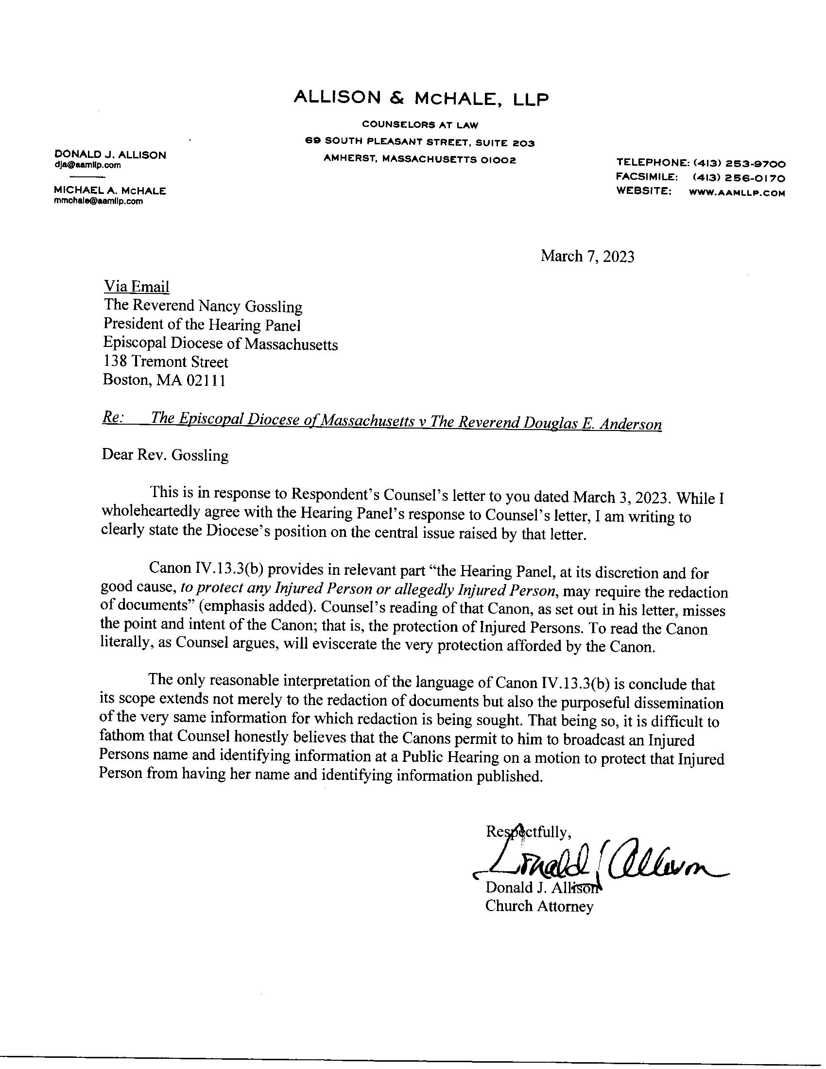 Church Attorney Response