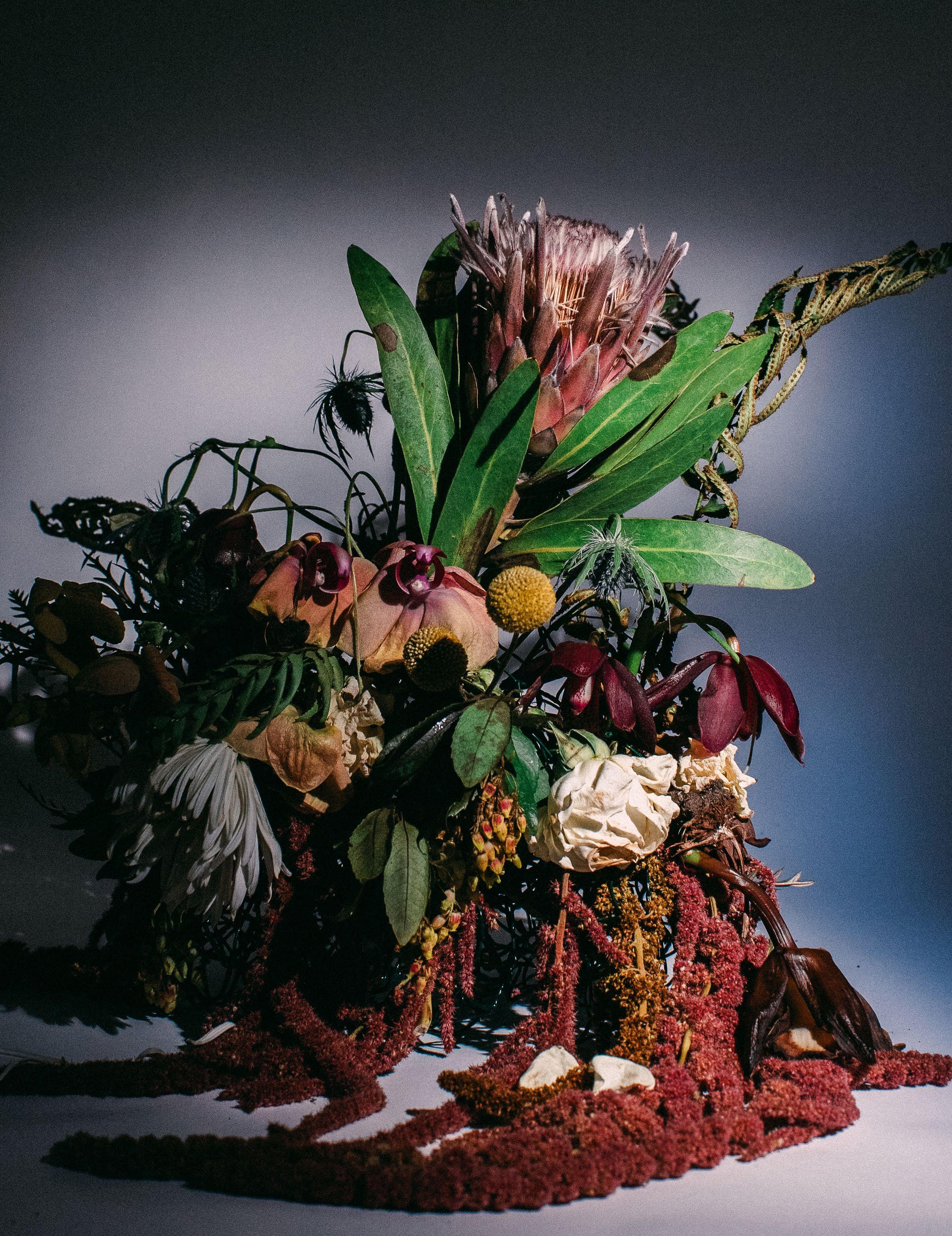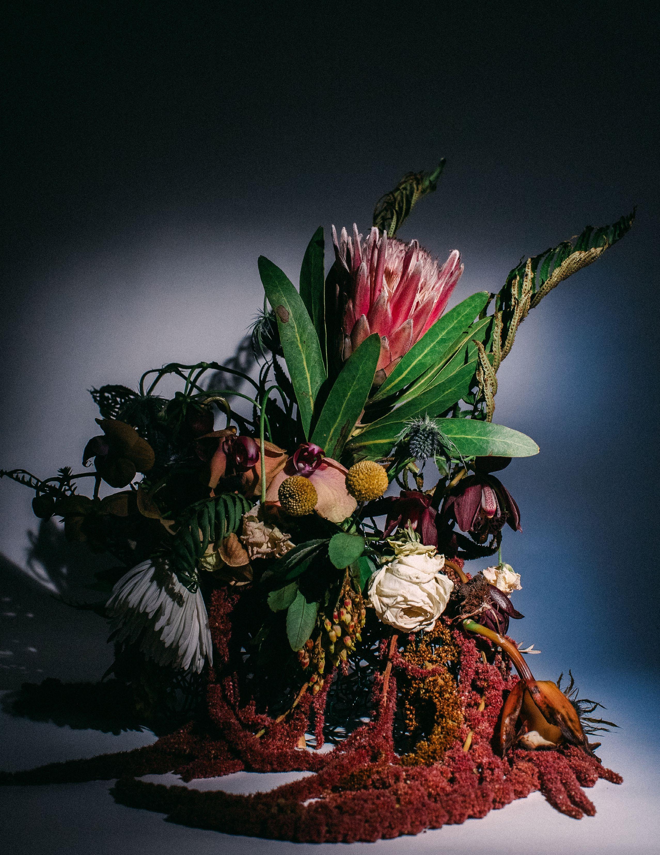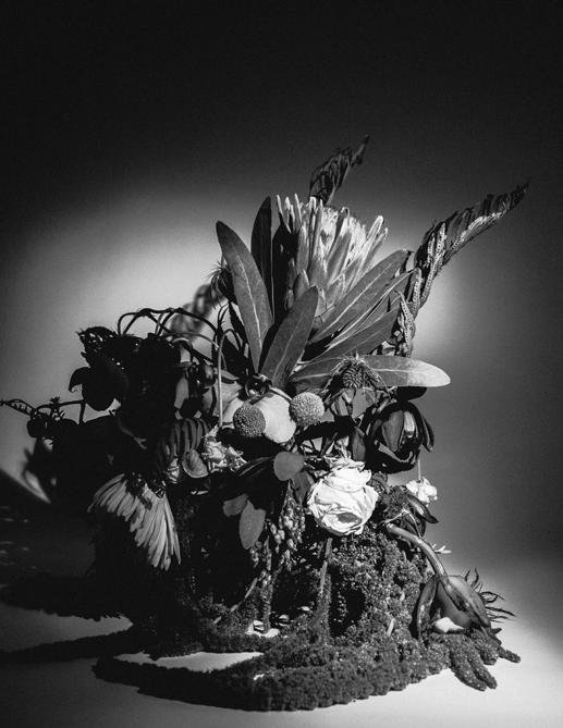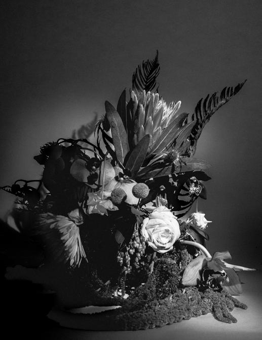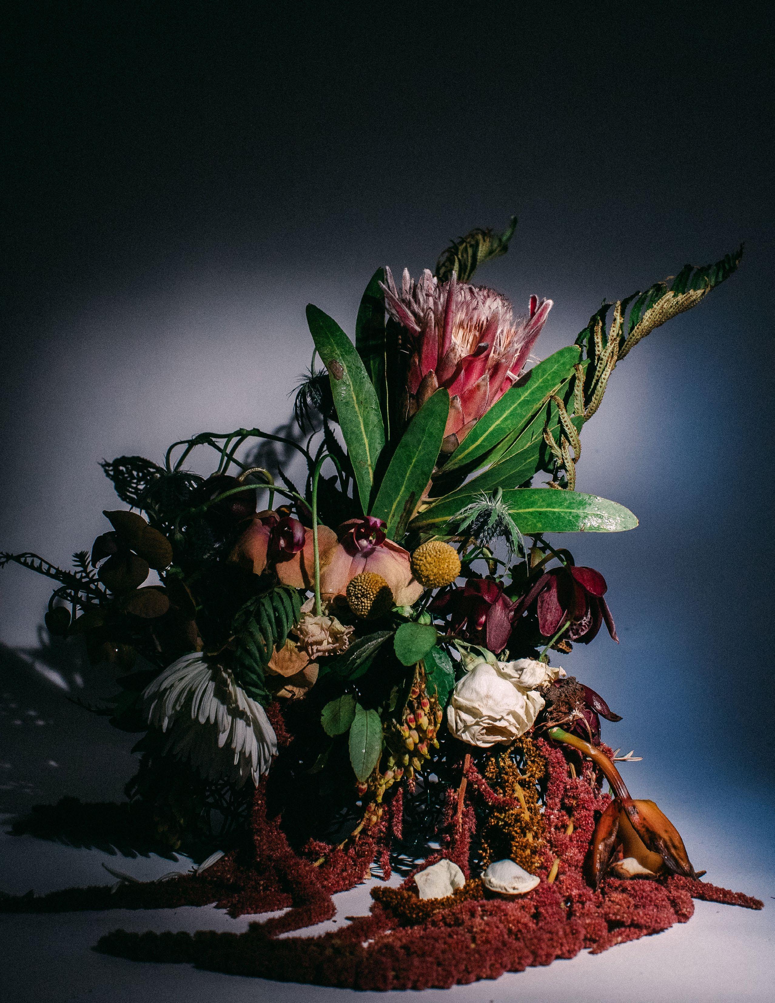 Cornelius, a friend I have known since childhood, and I have not had the opportunity to work together professionally, so when I asked him to be a part of this shoot I was excited at his eagerness to drive to Portland from San Francisco where he lives to be able to play and make art together. We prepped for one day, made our flower arrangement, and shot over the course of three days, waking every hour of the night to get the correct progression of shots we were aiming for.