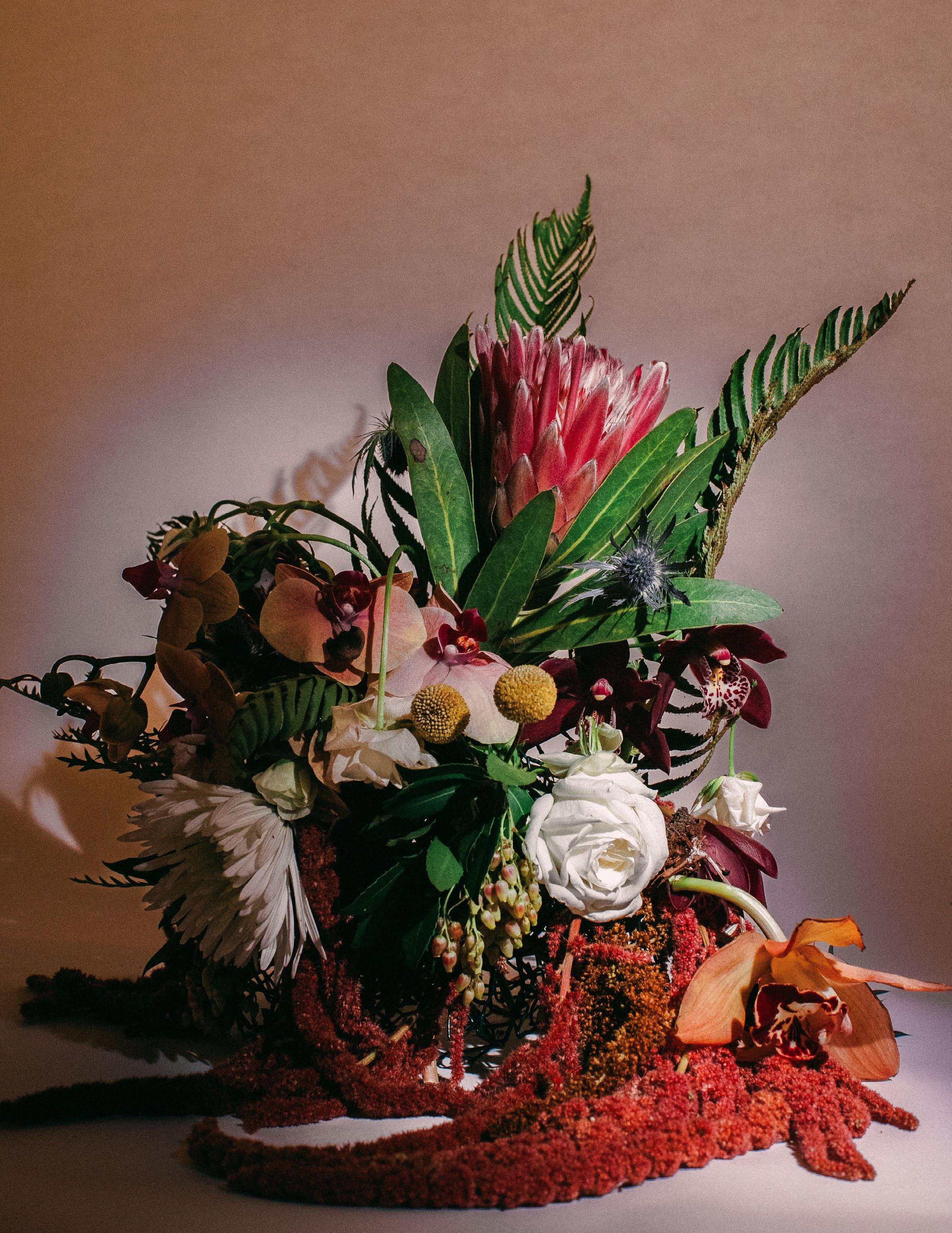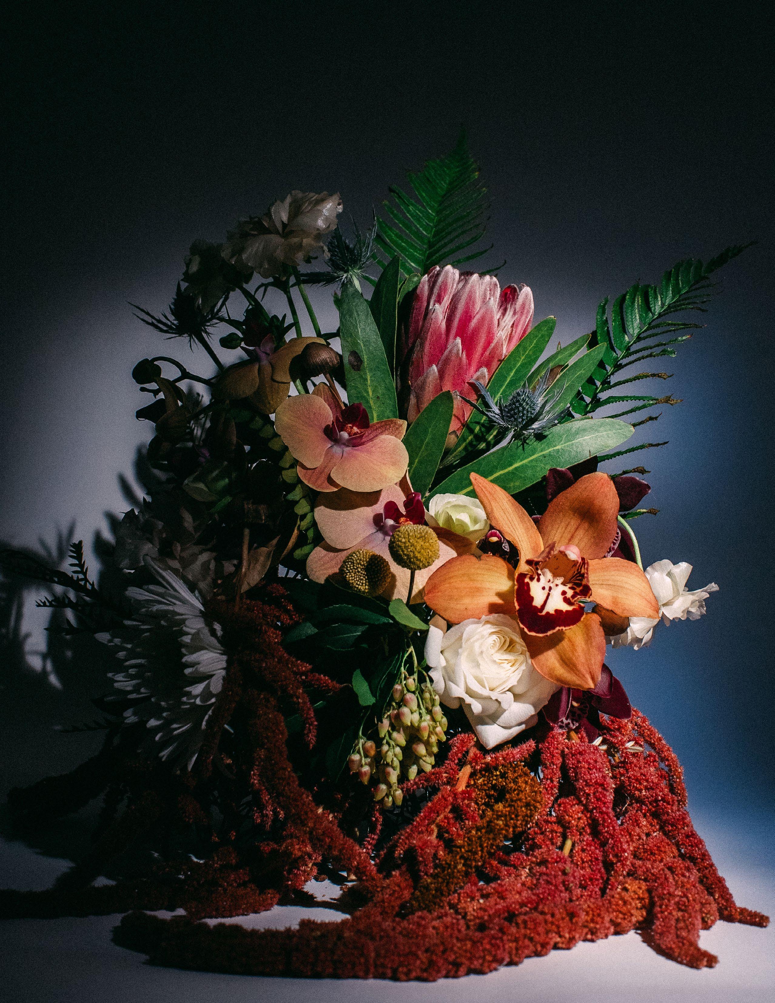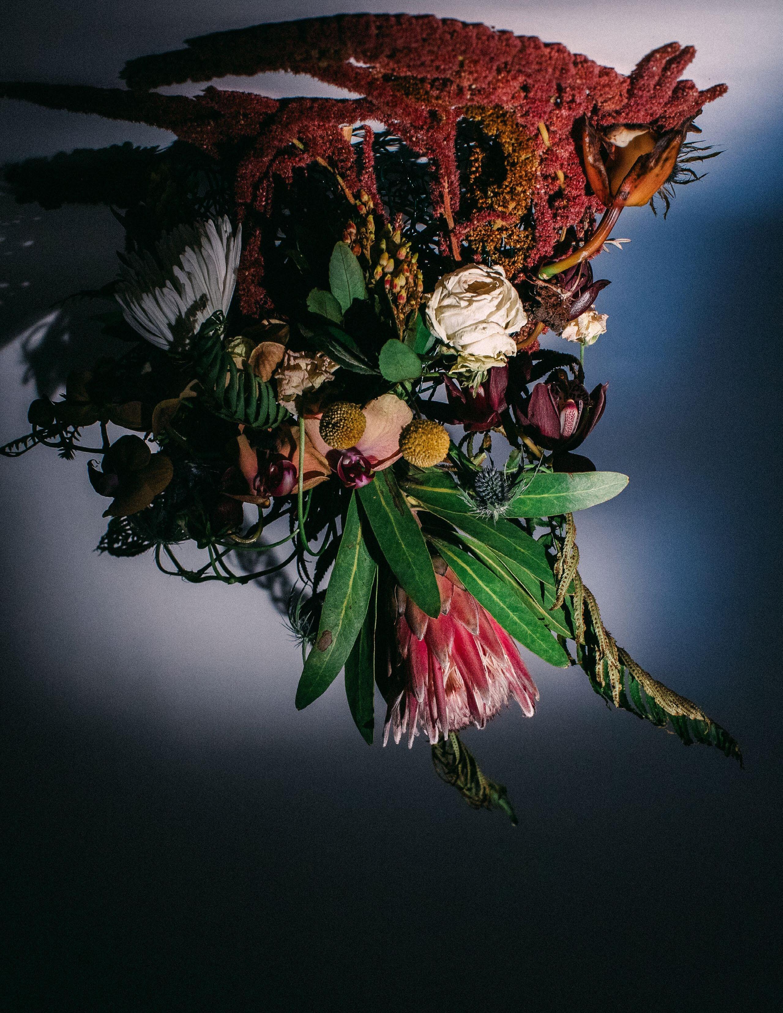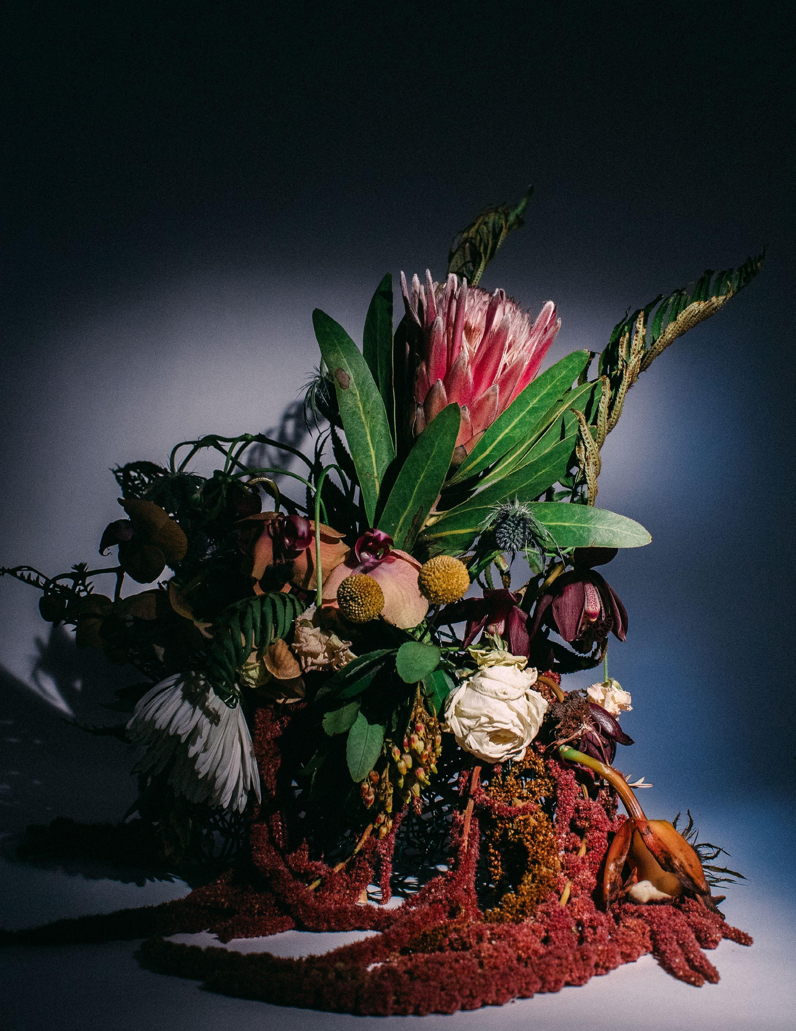 Cornelius, a friend I have known since childhood, and I have not had the opportunity to work together professionally, so when I asked him to be a part of this shoot I was excited at his eagerness to drive to Portland from San Francisco where he lives to be able to play and make art together. We prepped for one day, made our flower arrangement, and shot over the course of three days, waking every hour of the night to get the correct progression of shots we were aiming for.