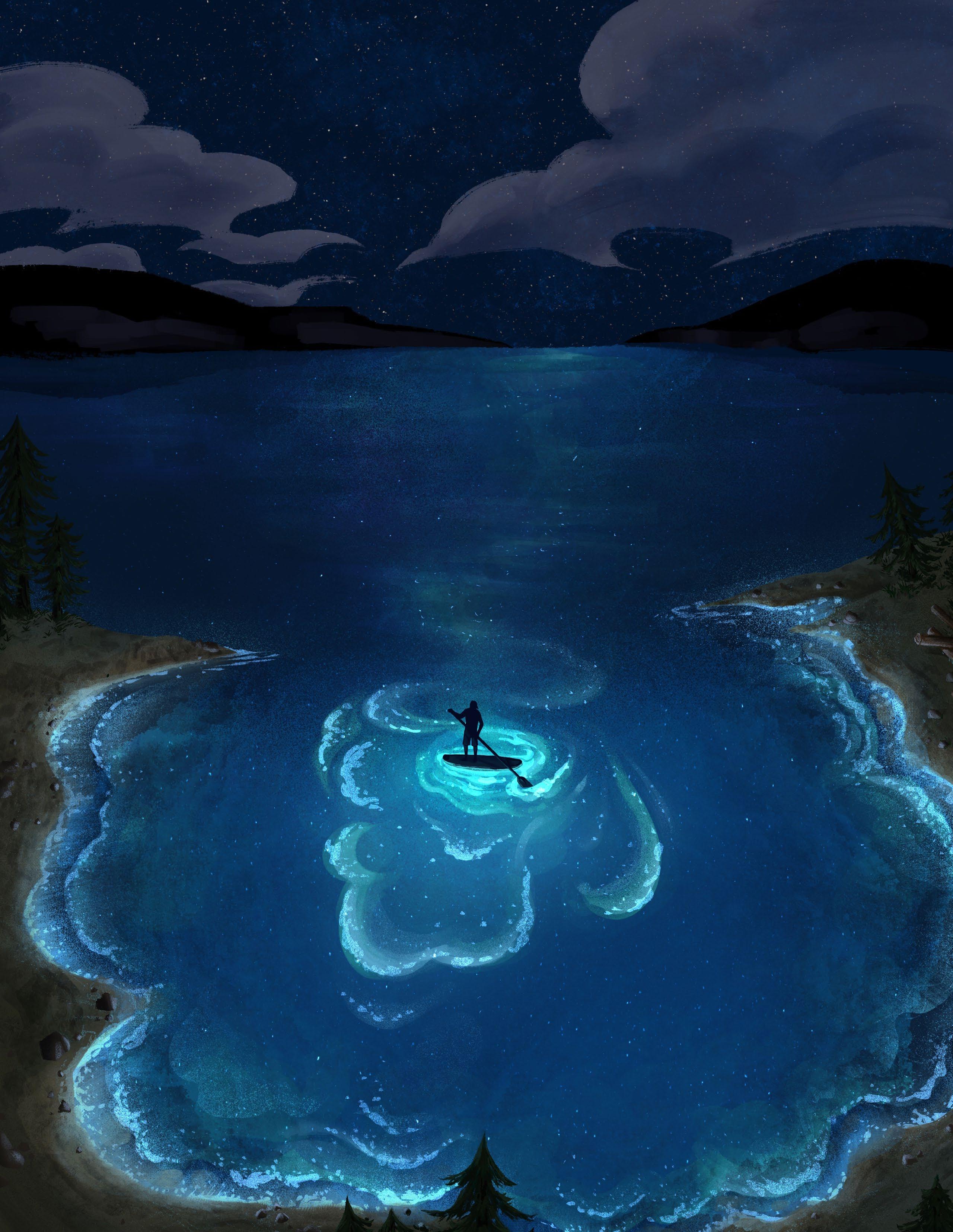 Every time the oars hit the surface of the ocean, the water around them glowed electric blue, like something straight out of Moana. This would have been a perfect moment for me to snap out of my pouty mood, maybe break into the chorus of “How Far I’ll Go,” but my bad attitude continued. Everyone “oohed” and “aahed” as Eric explained bioluminescence to us: the emission of light by tiny living organisms like plankton. The light is actually a chemical reaction in their cells and is a defense mechanism they employ when disturbed by something like a paddle moving across the water.