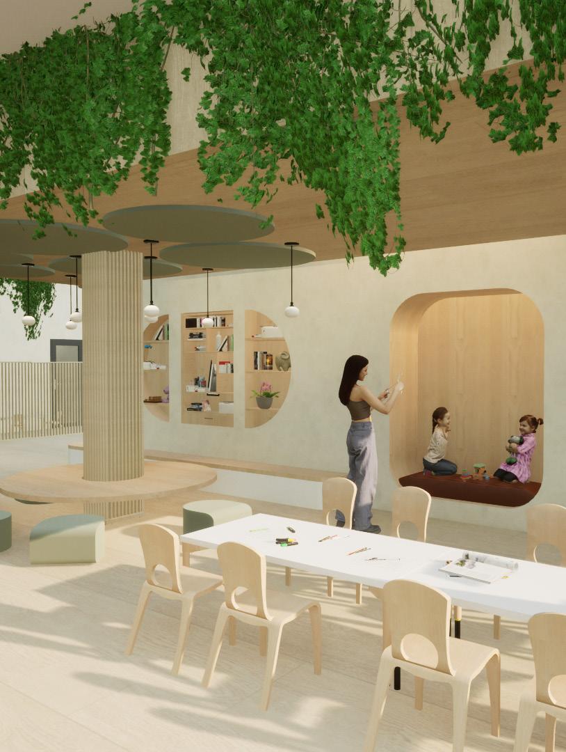 Inspired by the Montessori approach, my design for this child development center embraces the philosophy of community, collaboration, and appreciation for nature. Central to my vision is the integration of inclusive design elements catering to children on the autism spectrum, ensuring a nurturing and supportive environment. This child development center can be seen as a community where children learn, play, and grow, guided by Montessori principles and fostering a deep sense of respect and understanding for nature and those around them.