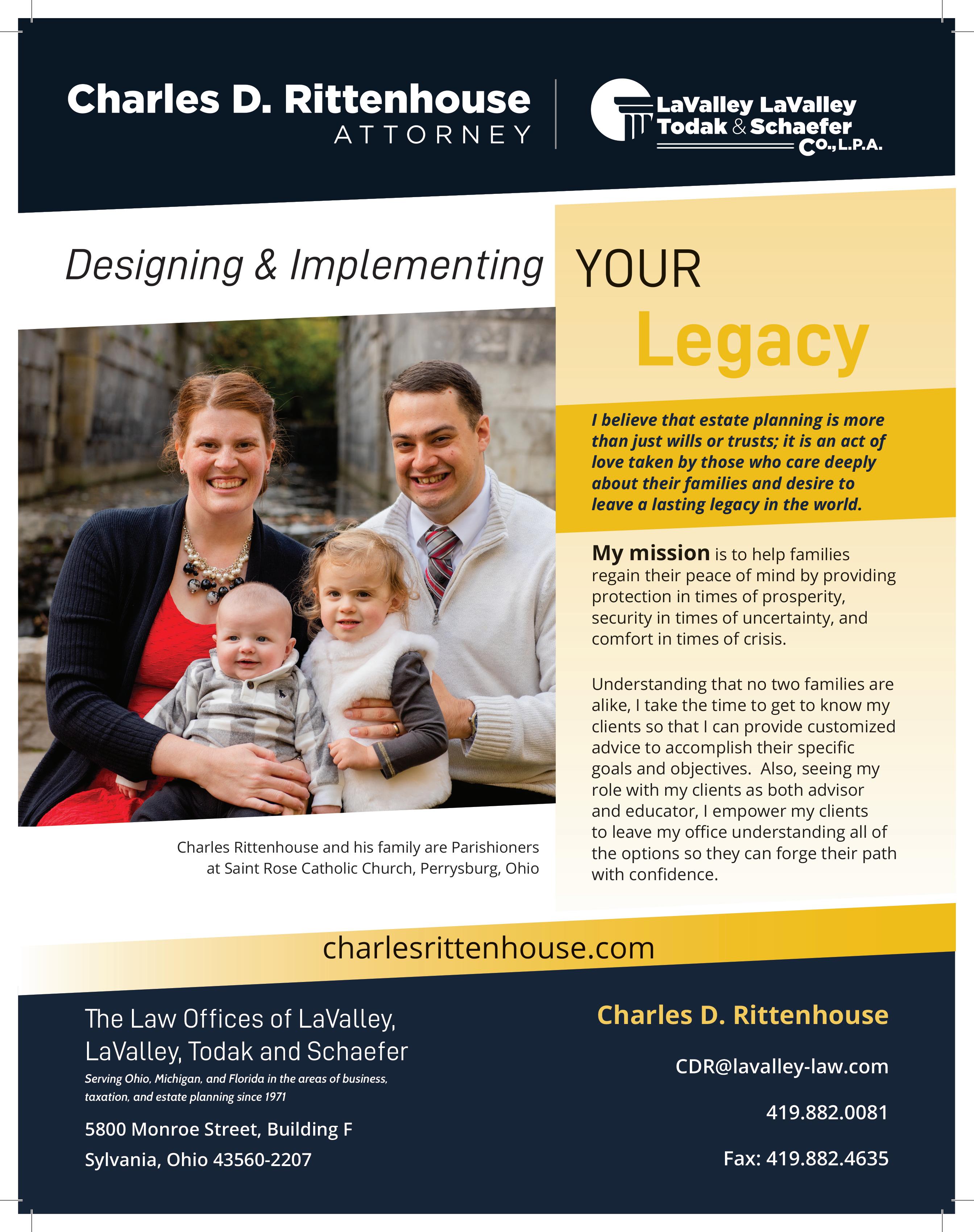 If you need help and want to know where you stand when it comes to estate planning, please contact Attorney Charles Rittenhouse at 419-8820081, or cdr@lavalley-law.com. You can also visit charlesrittenhouse.com to request his free e-book entitled, “The Smart Guide to Selecting an Estate Planning Attorney,” to learn more about starting the estate planning process
