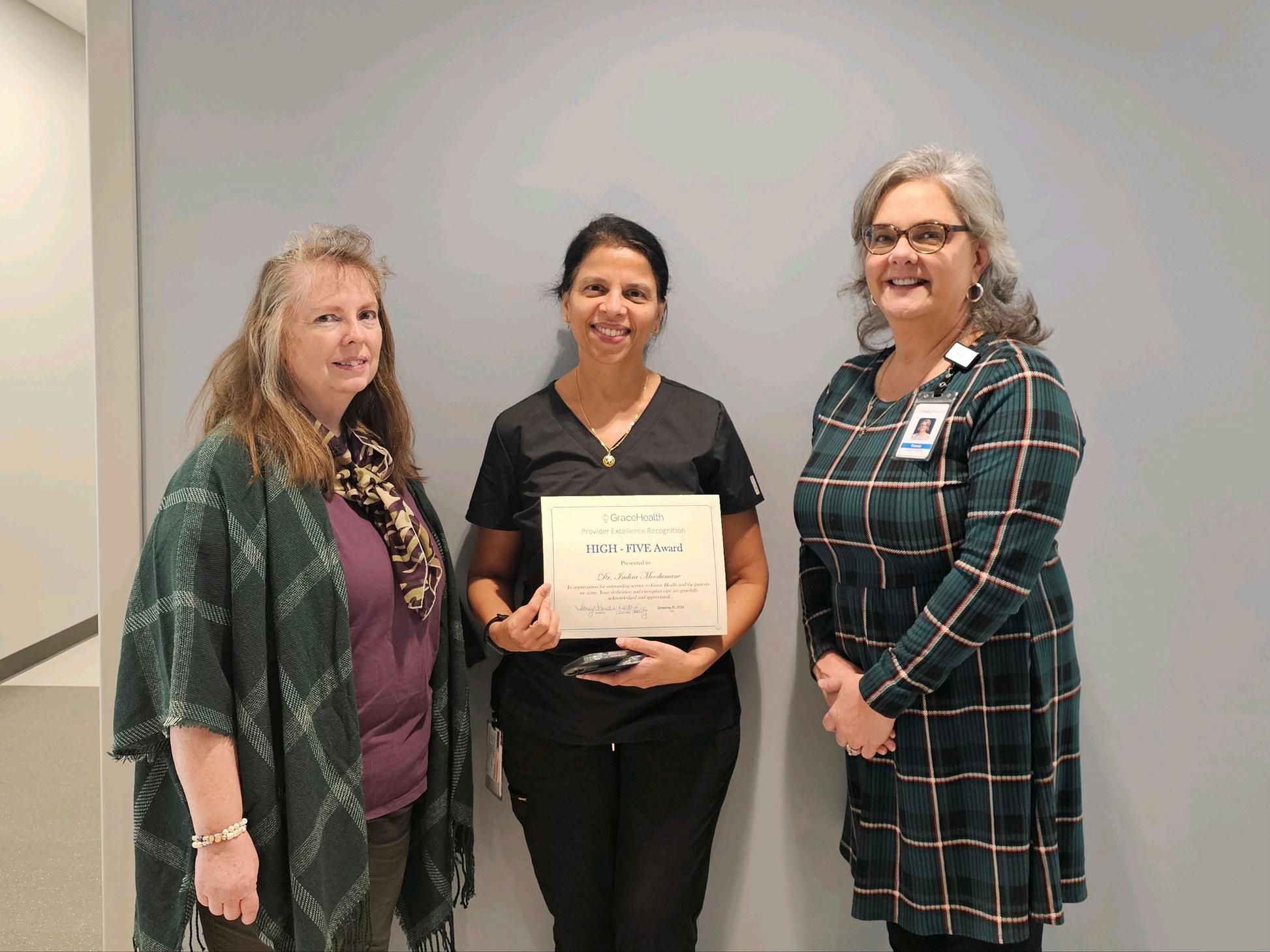 Ashley’s unwavering commitment to patients, her colleagues, and our mission at Grace Health makes her an invaluable asset to our team.
