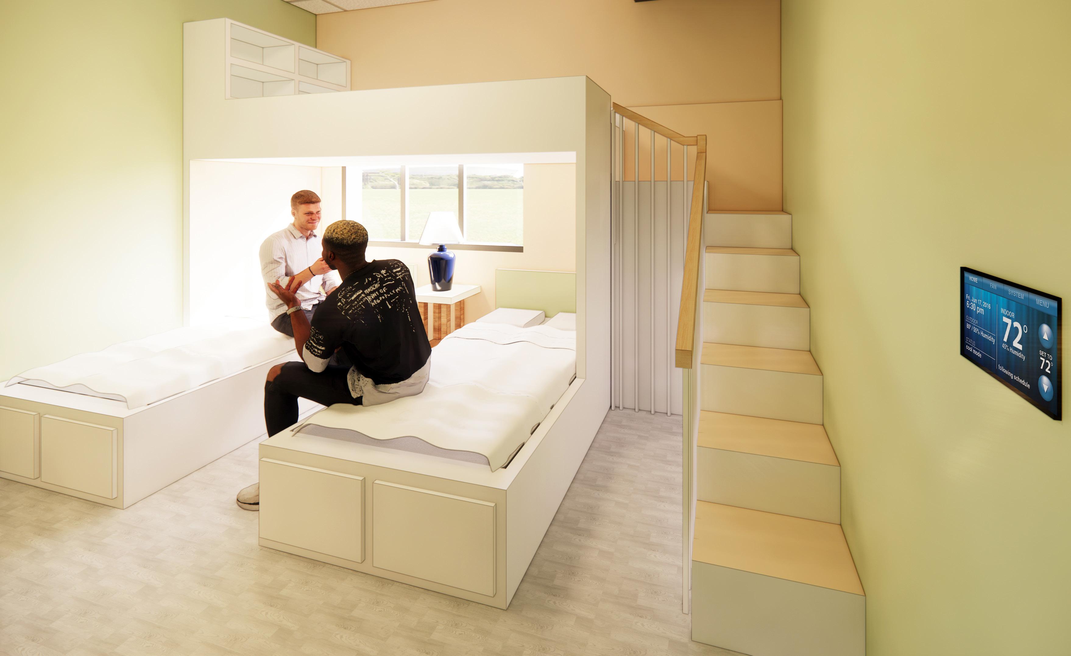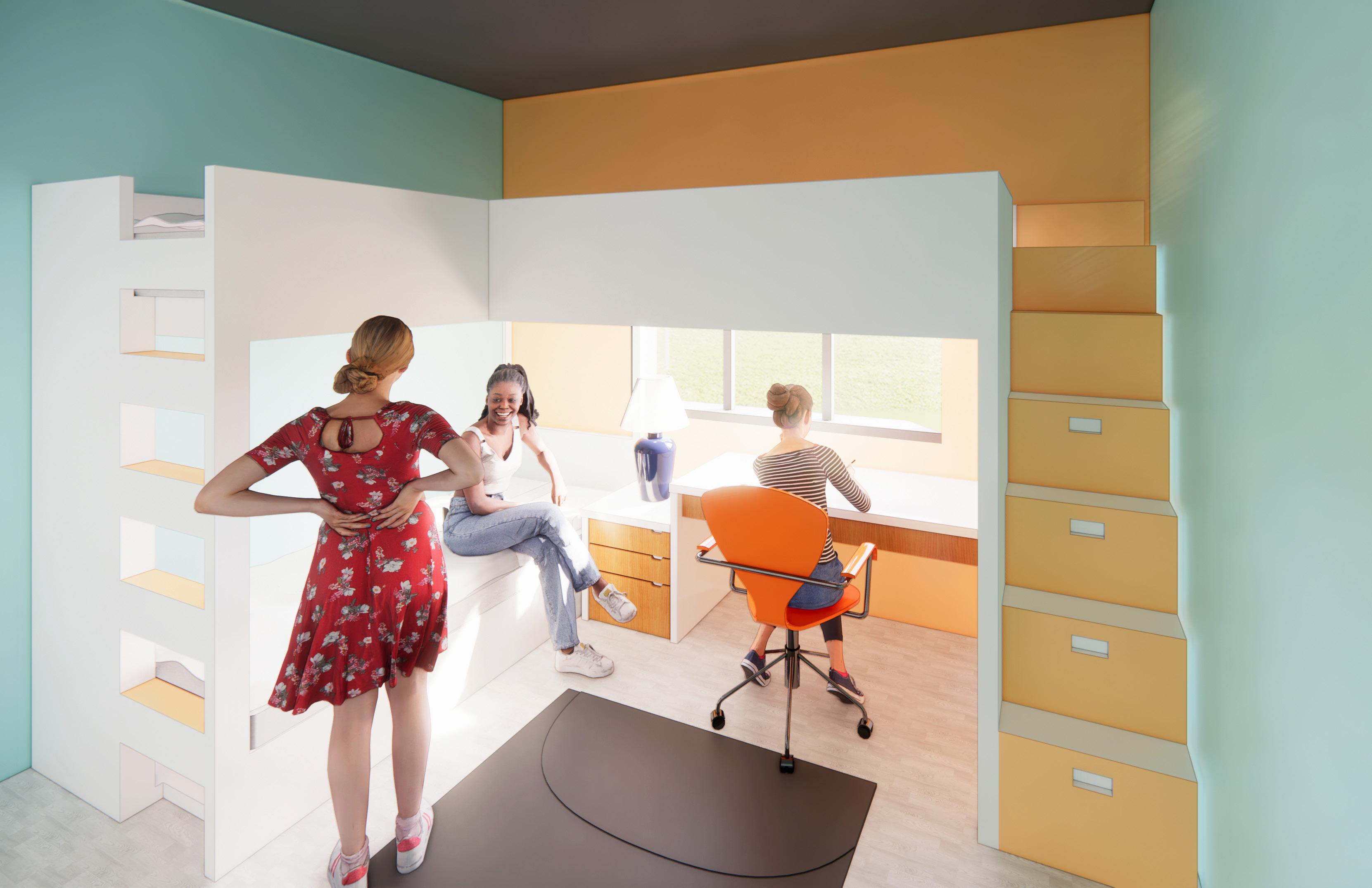 When designing the spaces I wanted to ensure siblings could have the opportunity to stay in the same room as well as having a space they could consider to be their own by creating a welcoming environment.