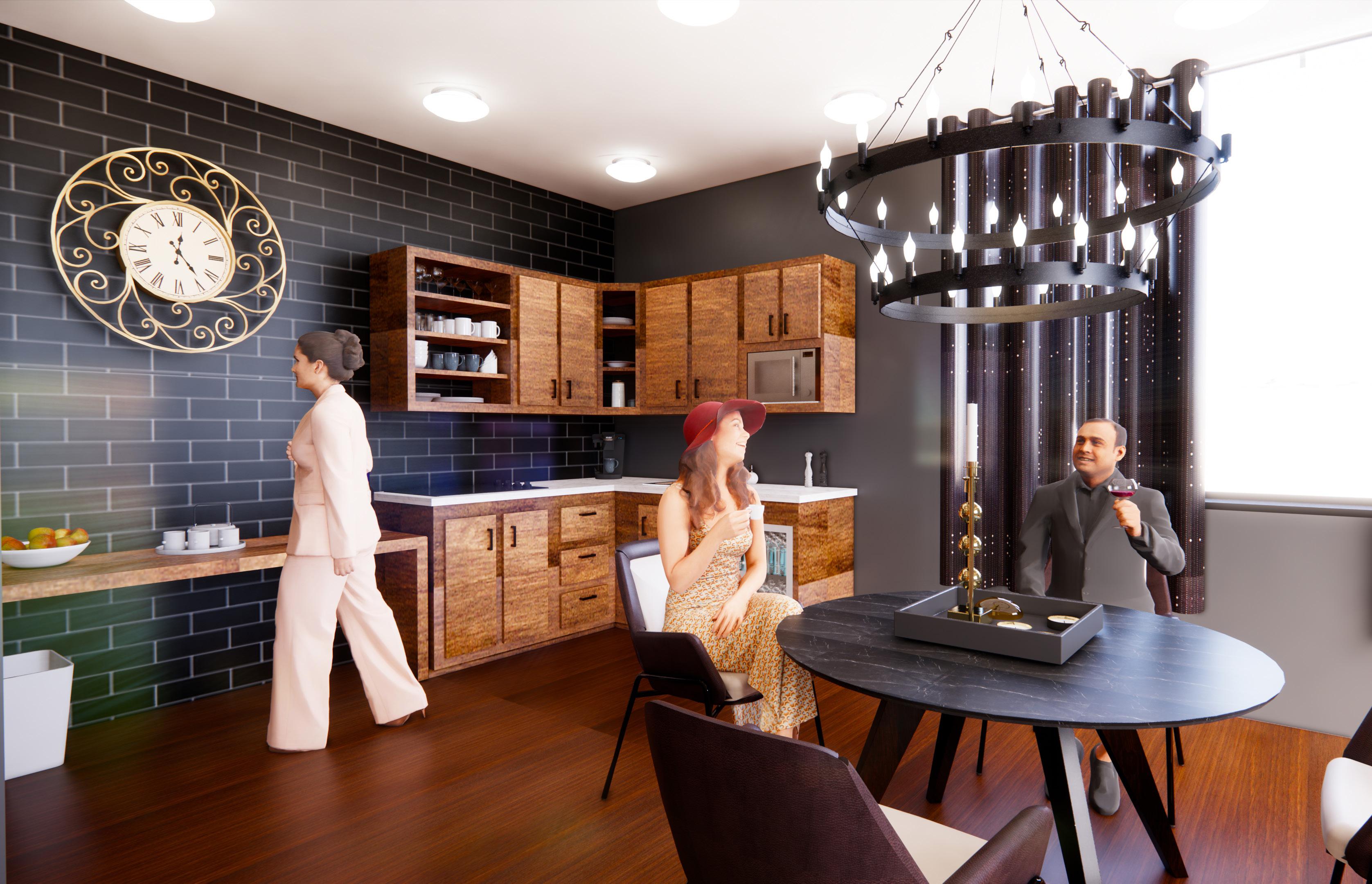 Where residents can eat, have options, and a buffet window for them to have a sense of control. Visitors can also eat with the residents.