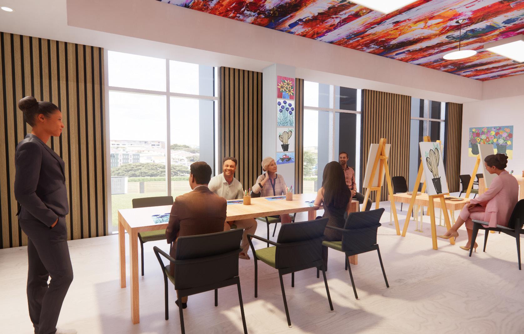 Residents can go to play or listen to music and watch performances To do art with a group or individually that can be led by a worker