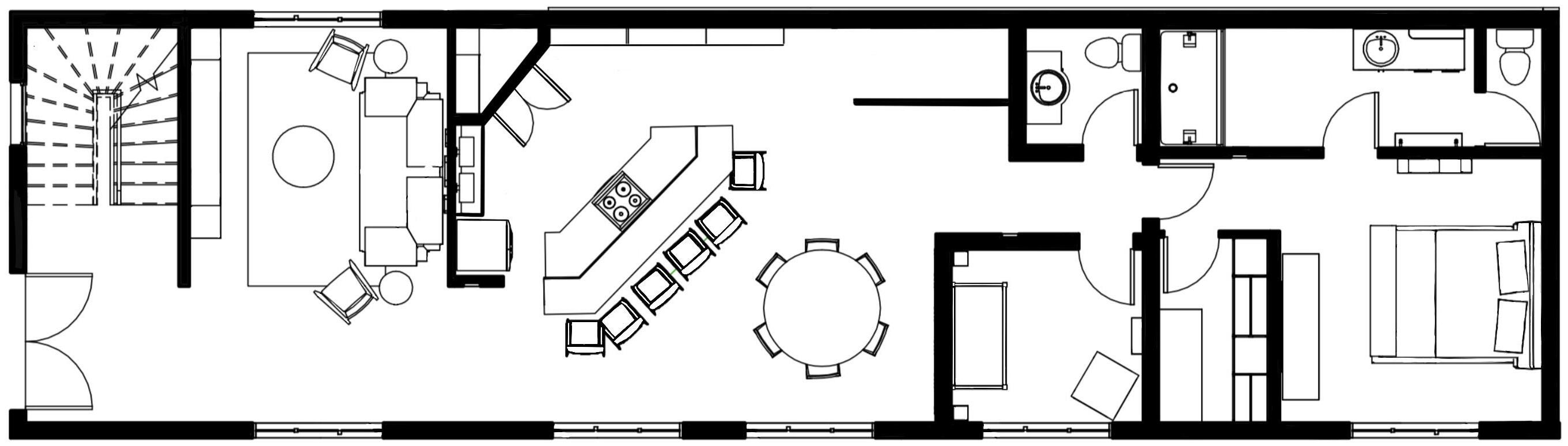 I was given a lot in Strawberry Hill to design a shotgun style house. I decided to create a house for children in foster care . After working at a preschool and having some kids that are currently in foster care I wanted to dedicate this project to them as well as a friend I grew up with who went through foster care. Learning more about some of the challenges and key points they wish they had while going through the foster care system I wanted to implement those elements when developing my concept.