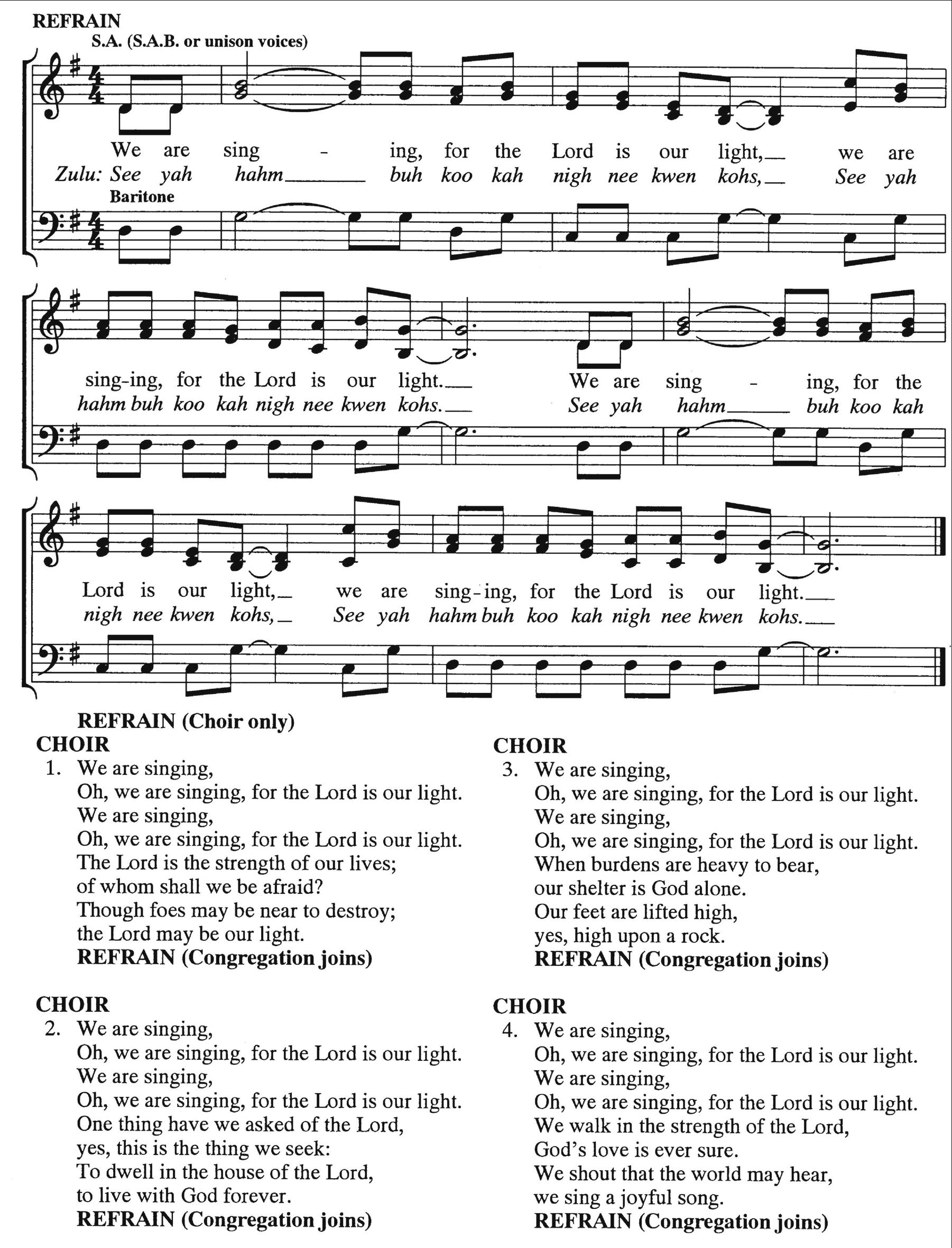 CHOIR ANTHEM We Are Singing, for the Lord Is Our Light