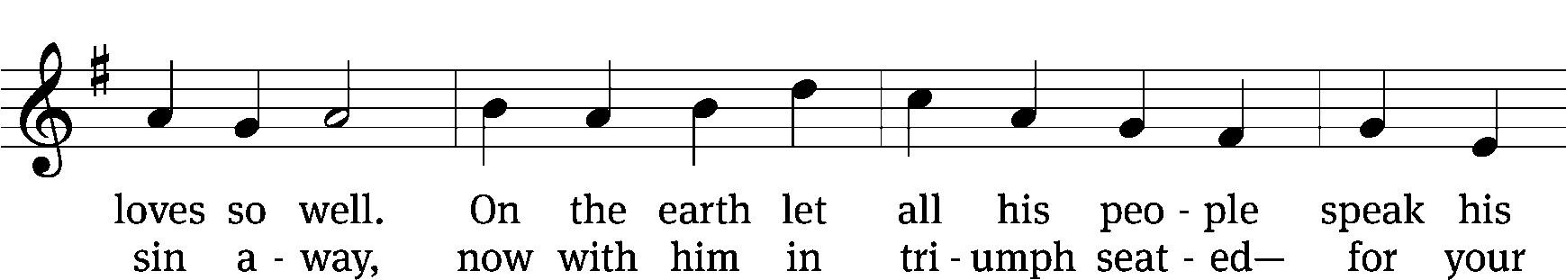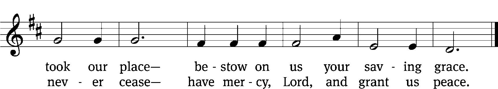 God, our merciful Father, has forgiven all our sins. He sent his Son, Jesus Christ, to be our Redeemer and Savior. Jesus paid the penalty for our guilt by his death on the cross and freed us from death by his resurrection from the grave. We have peace with God now and forever.