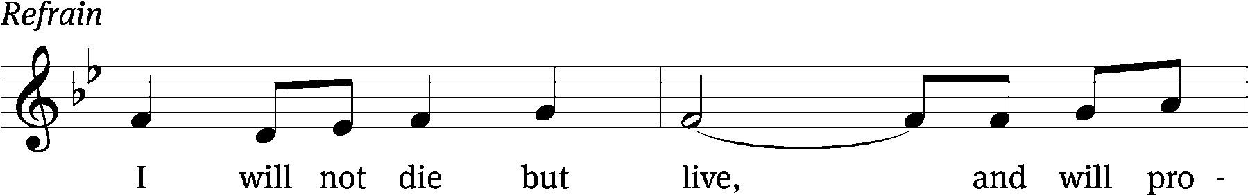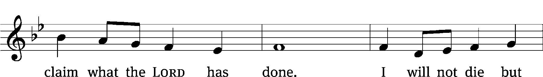 Vocalist: I will not die but live, and will proclaim what the L has done. I will give you thanks for you answered me; you have become my salvation.