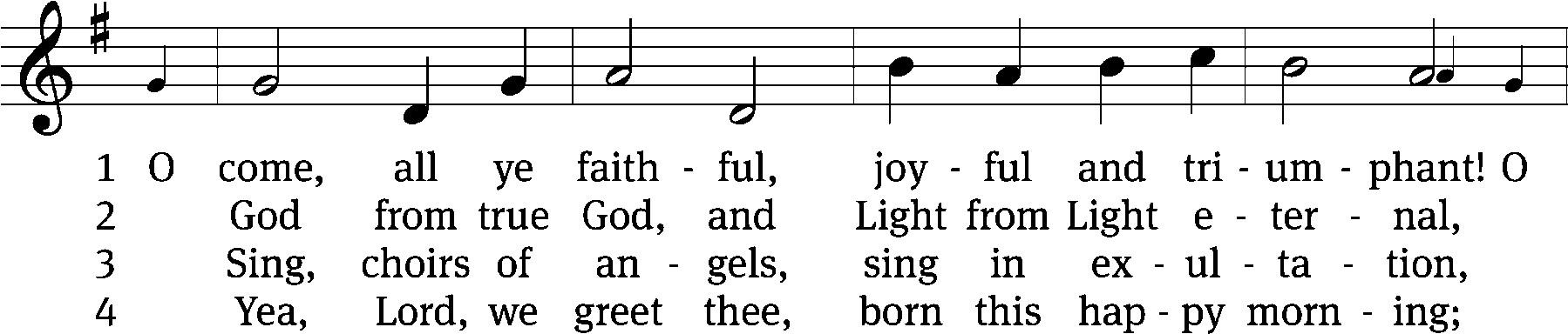 Minister: Beloved in Christ: In this Christmas season it is our duty and delight to hear again the message of the angels and, in heart and mind, to go even unto Bethlehem and see this thing which has come to pass, which the Lord has made known to us, the Christchild, lying in a manger.