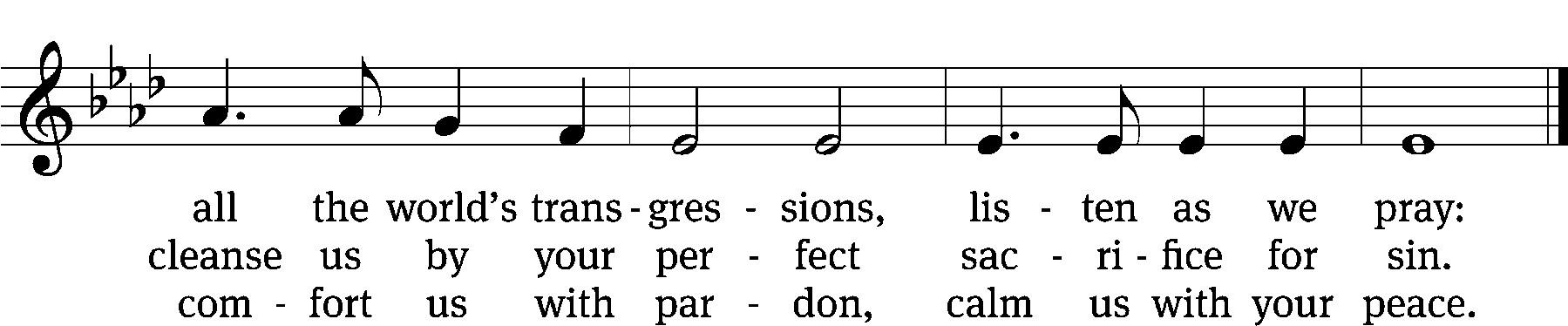 John the Baptist pointed to Jesus and said, “Behold the Lamb of God, who takes away the sin of the world!” We sing the Agnus Dei confident that Jesus has borne our sins and freely gives us forgiveness and peace in the Sacrament.