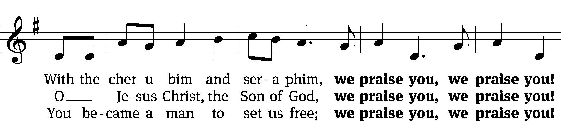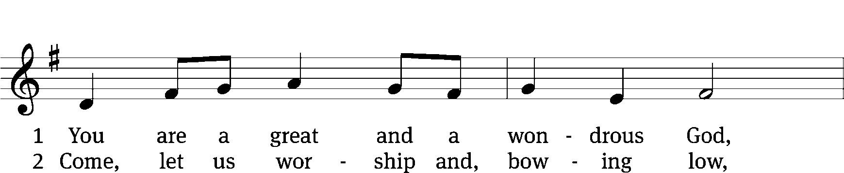 The minister sings the first part of each line. The congregation responds with the words in bold.