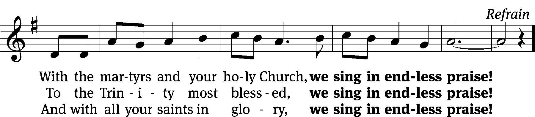 The minister will sing the refrain the first time. The congregation immediately repeats the refrain and then sings it after each verse.