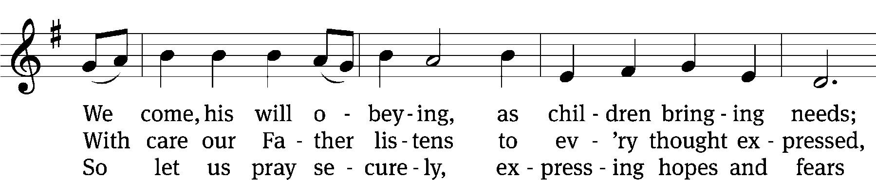 Matthew 6 and Luke 11 record how Jesus taught his disciples to pray. We use his example prayer as part of our public worship, trusting that he will hear and answer our prayers. During the singing of this hymn, children ages 1-8 are excused to attend Children’s Church in the CLC Building. Parents can pick-up their children there following the service.