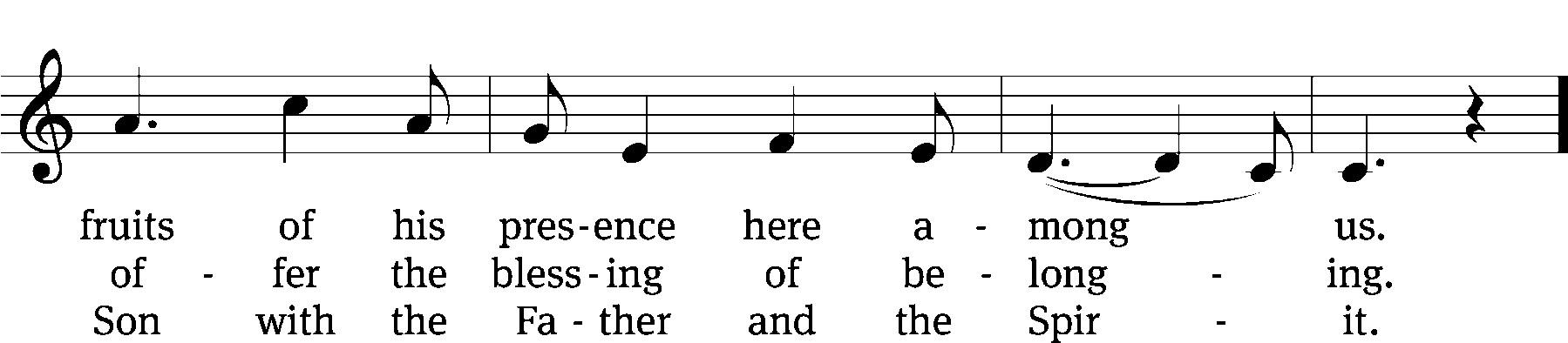 Minister: In the name of the Father and of the Son (+) and of the Holy Spirit. Congregation: Amen.